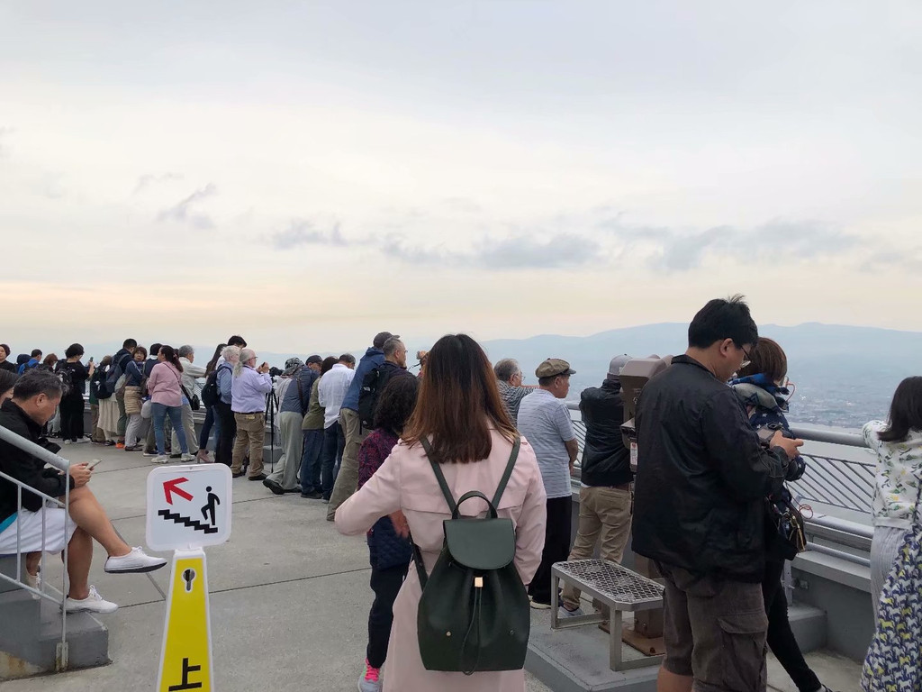 缆车票一千多日元,也有巴士能上山,车票便宜很多。但缆车5分钟就能到展望台,巴士绕着山路开,得开30几分钟。随意选择啊?