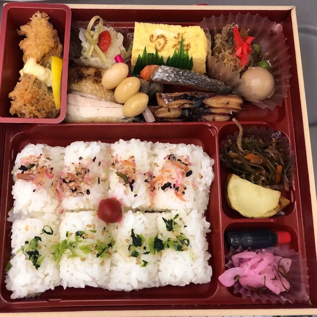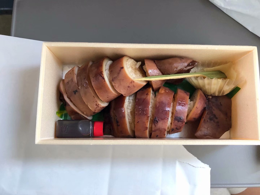 朝市的旁边就是JR车站,吃完直接进站,中饭预计会在车上解决了,所以在售卖呈车站便当的柜台买了三份便当带着。