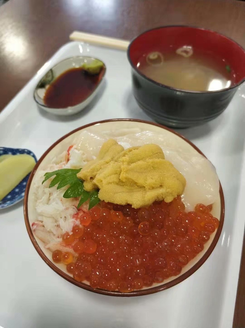 早餐是函馆朝市的海胆盖饭。朝市就是这里的市场,就是开得早了些。我们七八点到,已经晚了,没吃上最划算的那家的海胆饭。