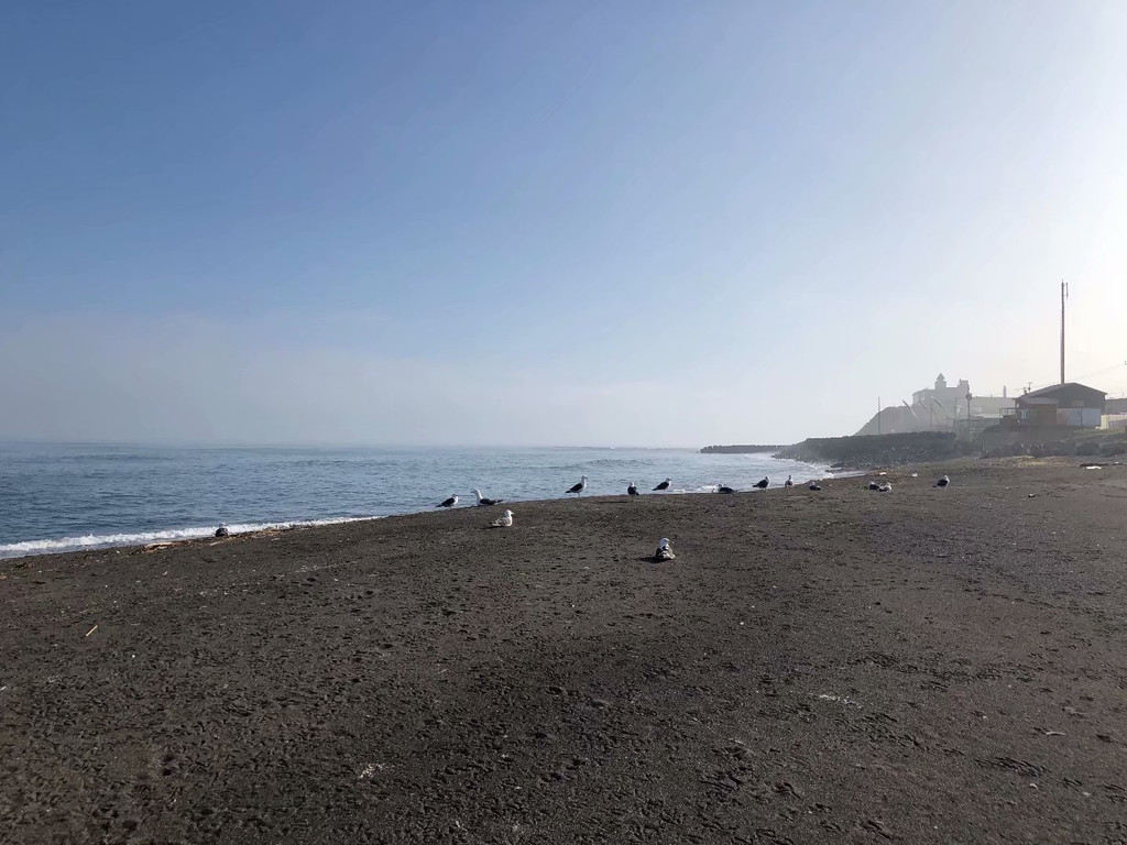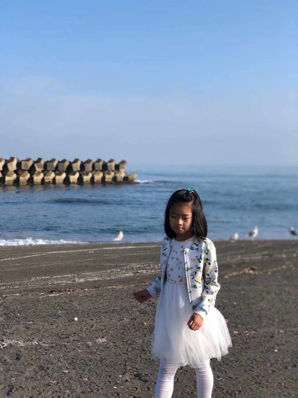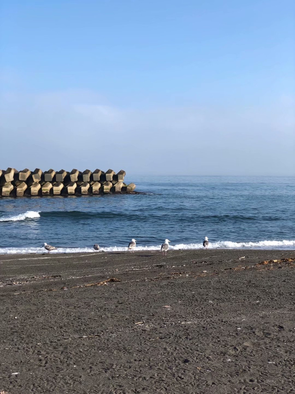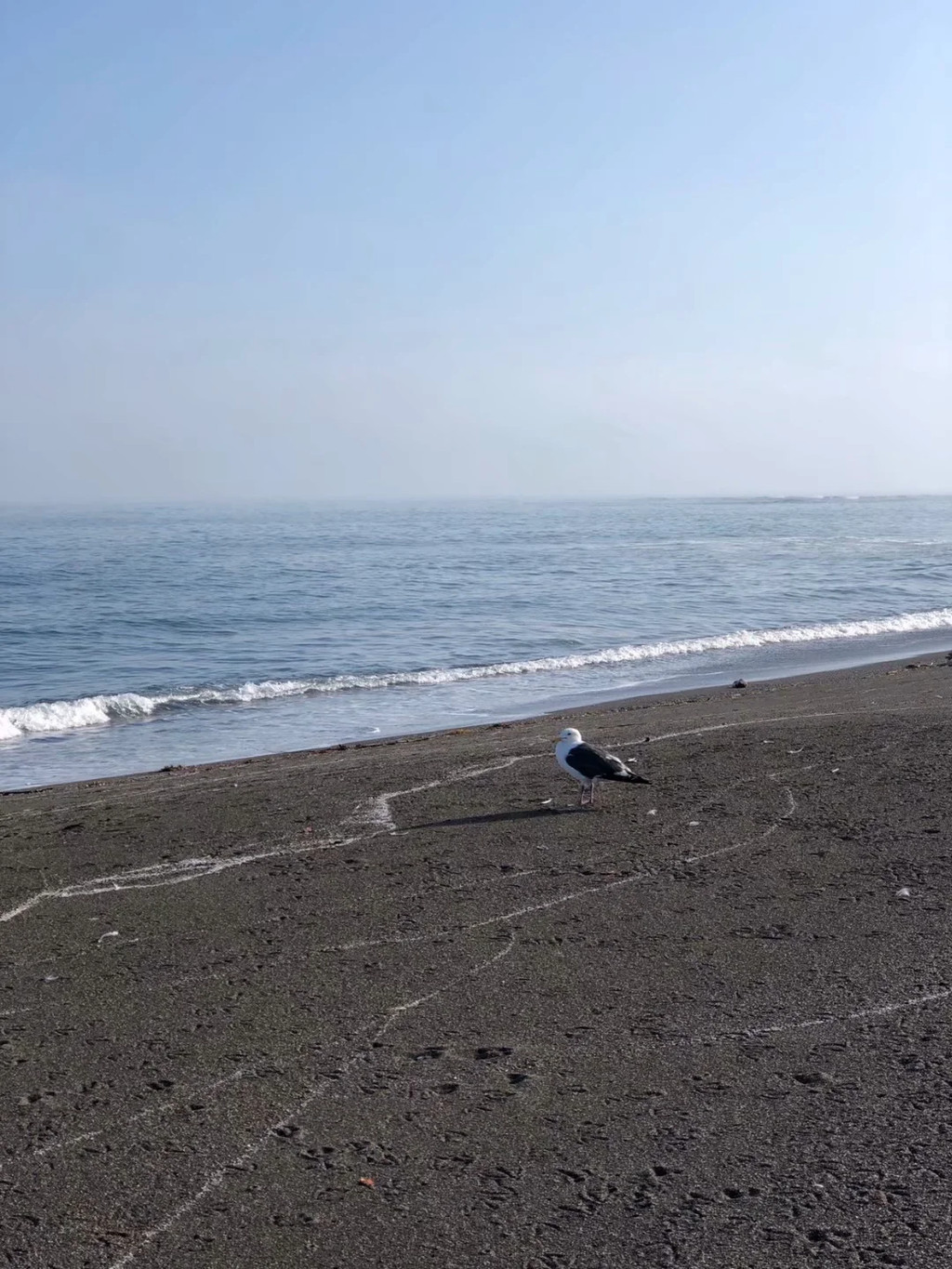 太平洋的海边果然很蓝,海边没有其他人,就我们一家三口,加一群海鸥。