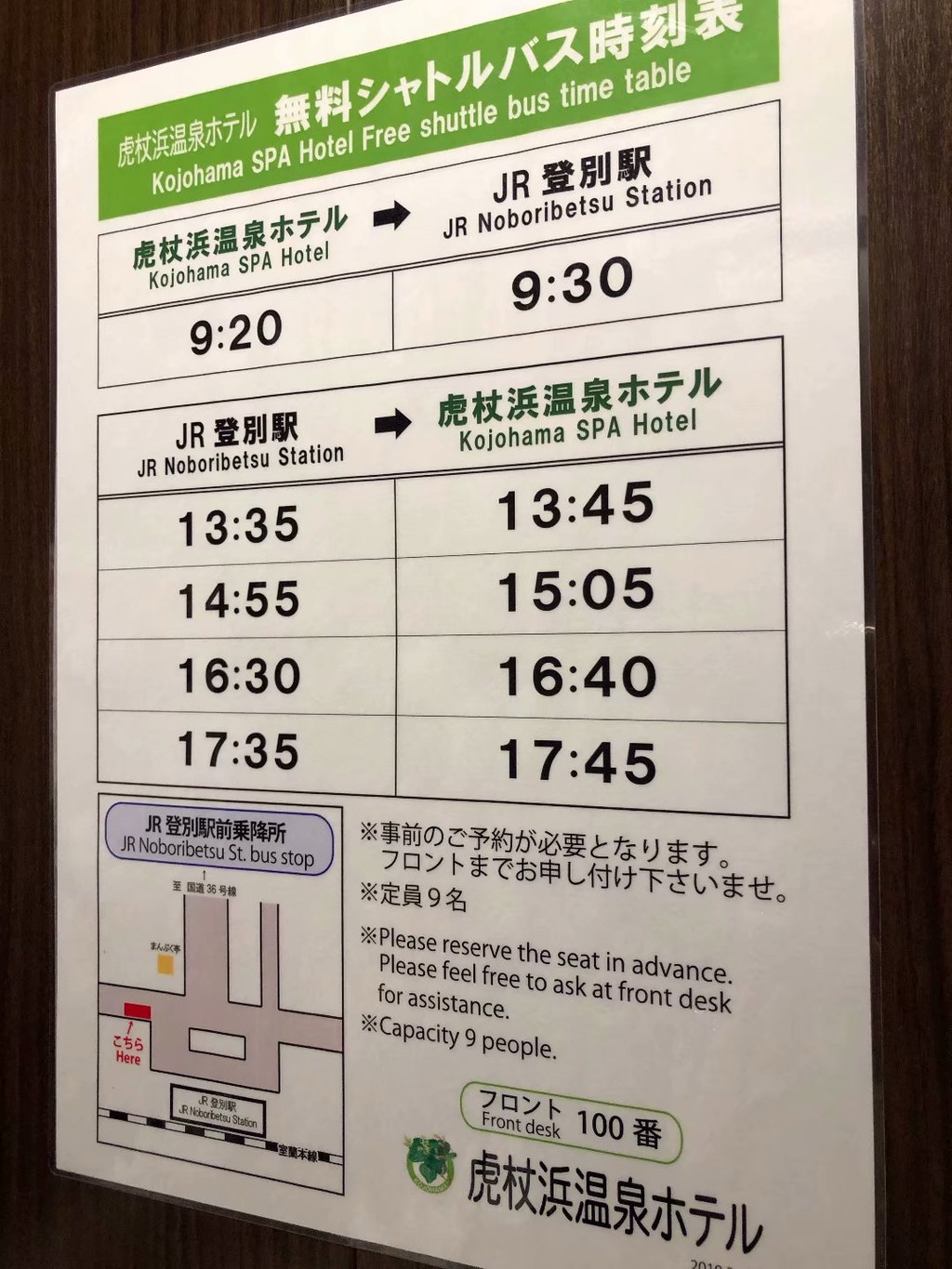 旅馆位于虎杖滨,离登别一站电车的路程,旅馆有接驳车在登别JR站接人,只要提前预约好时段即可。