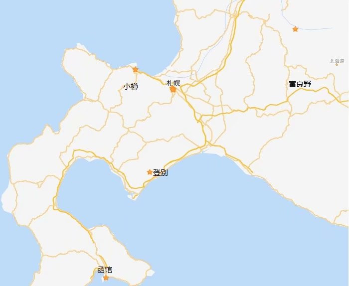 以下几个大致的点,是这趟旅程去的地方。新千岁机场,大概位于札幌和登别中间位置,先去登别,再到函馆,之前回到札幌,以此为基地游玩附近的地方,购物也安排在后面几天,对于自助游来说比较合适。