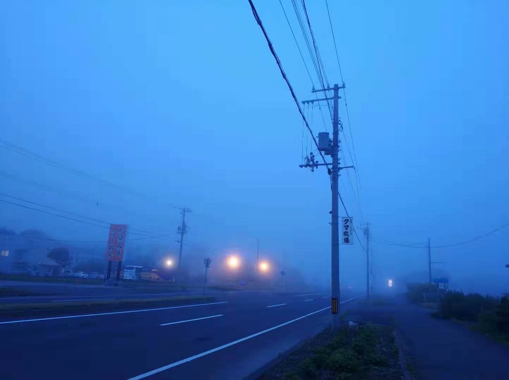 晚上开始起雾,来得很快,没一会就浓得不见远处。