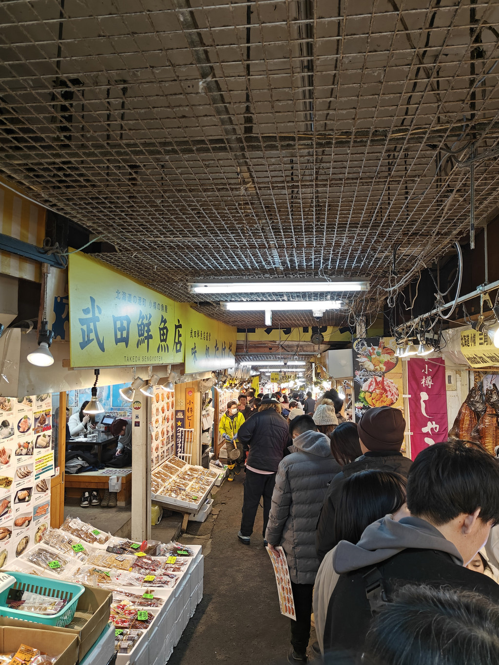 巴士在 小樽 停靠三站,我们坐到 小樽 駅,旁边就是三角市场,是个海鲜市场,可以直接买来烹饪,也可以吃定食。出了市场不远过铁路就是船见板。然后往 小樽 运河方向走,顺着运河能走到出拔小路,出拔小路尽头是八音盒博物馆。在那步行几分钟到吉神社前车站可以做巴士回 札幌 。