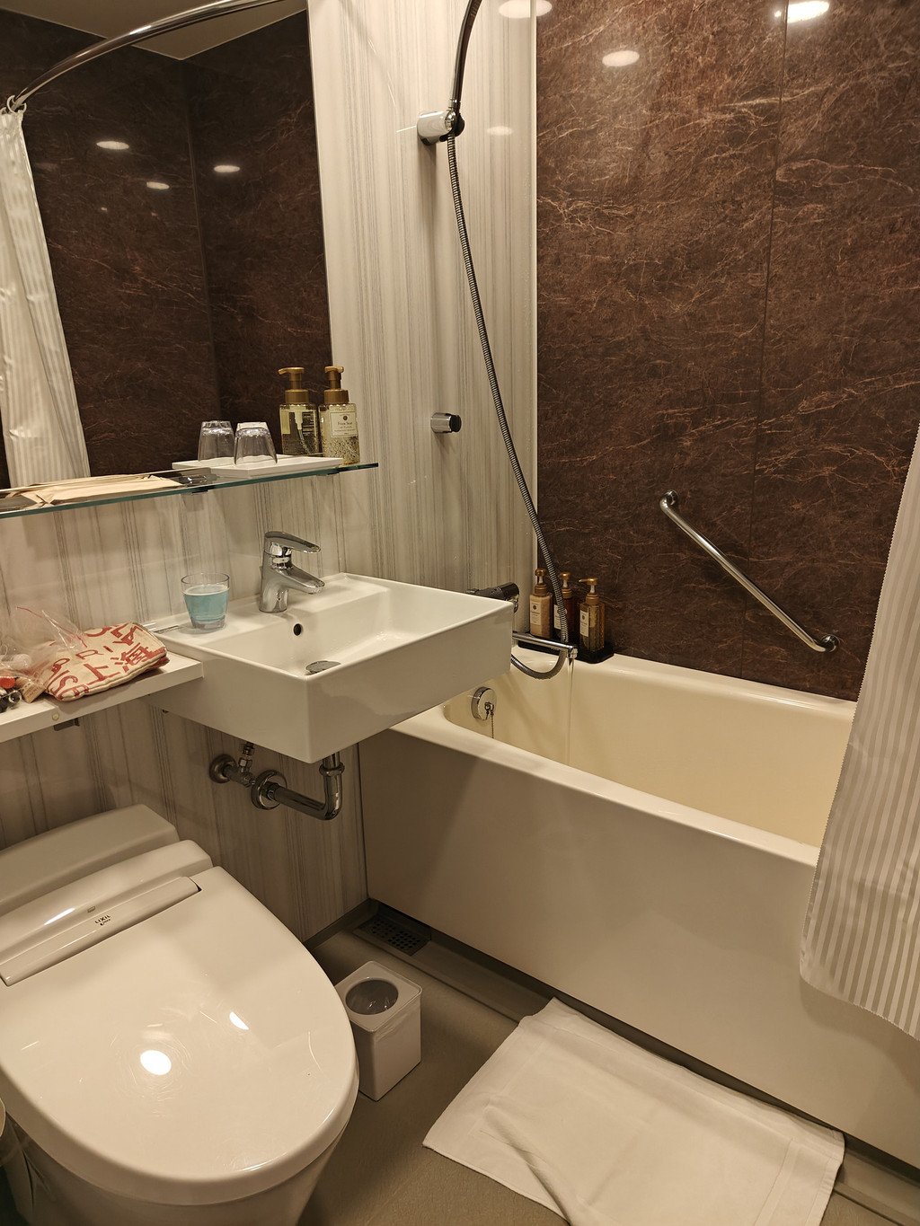 住宿选了东急stay,这应该是 日本 的连锁酒店,之前在 东京 住过,房间虽然不大但仍有浴缸,楼下有免费的洗浴用品和茶包之类的,重要的是房间内有洗衣烘干机,不知道是不是所有房间都有,我在 东京 和 札幌 住的都有。简直是太方便了。尤其是滑雪回来衣服裤子都湿透了,在房间内就可以烘干。