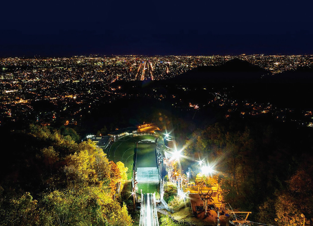 这个跳跃场是由大仓喜四郎男爵捐赠给札幌市的,他也是大仓酒店的创始人。从海拔 307 米的跳台起点的观景台上,您可以欣赏到札幌市和入口处石狩平原的光芒全景。