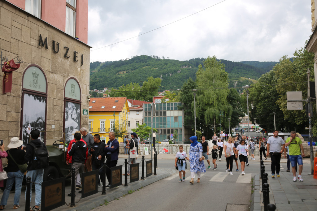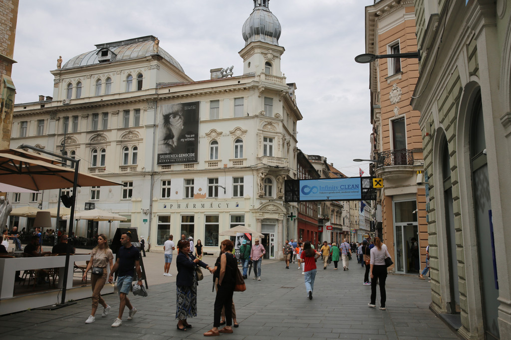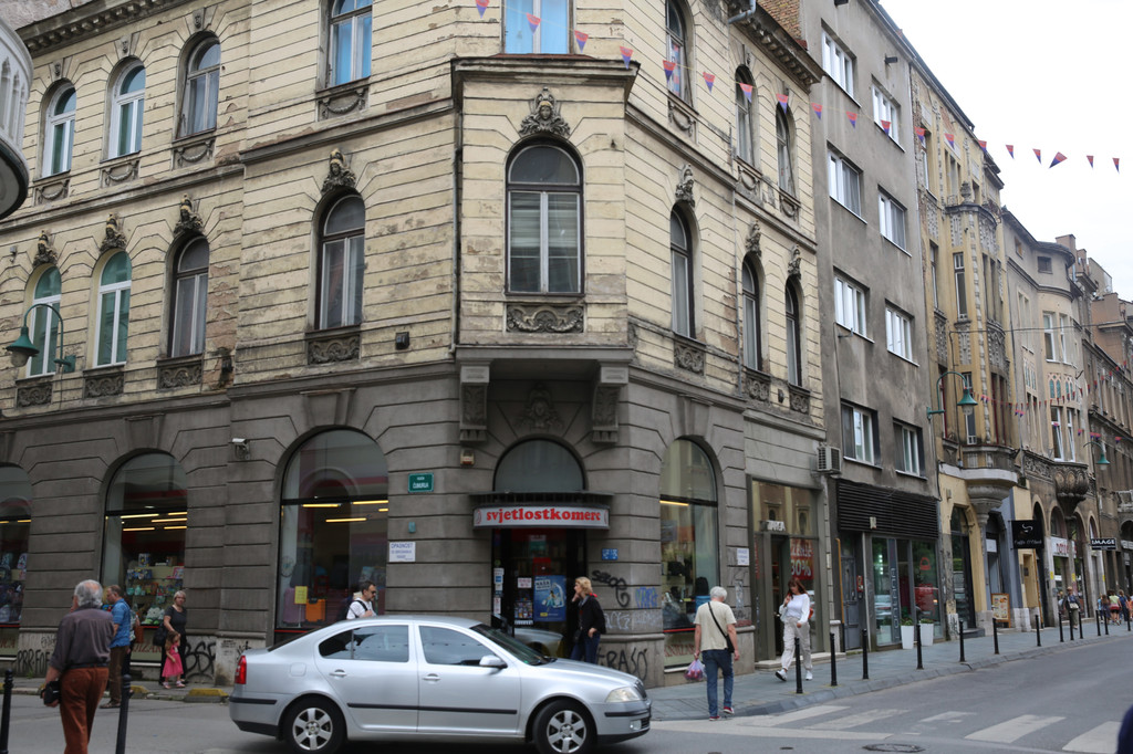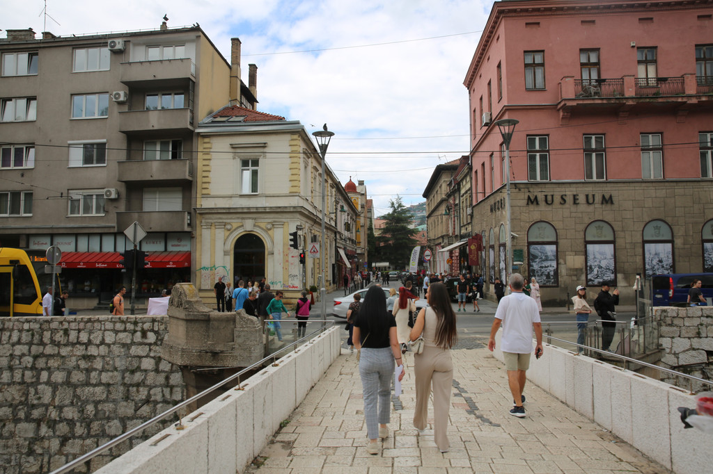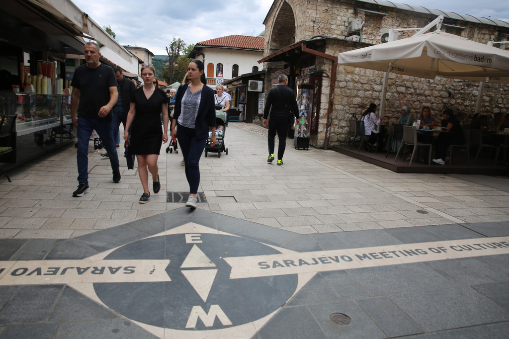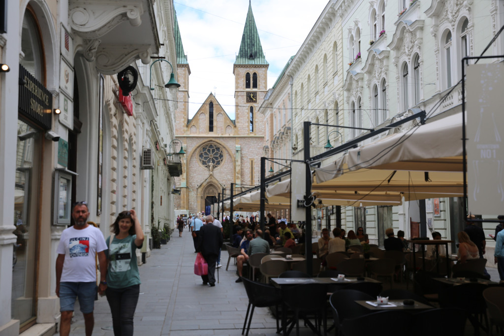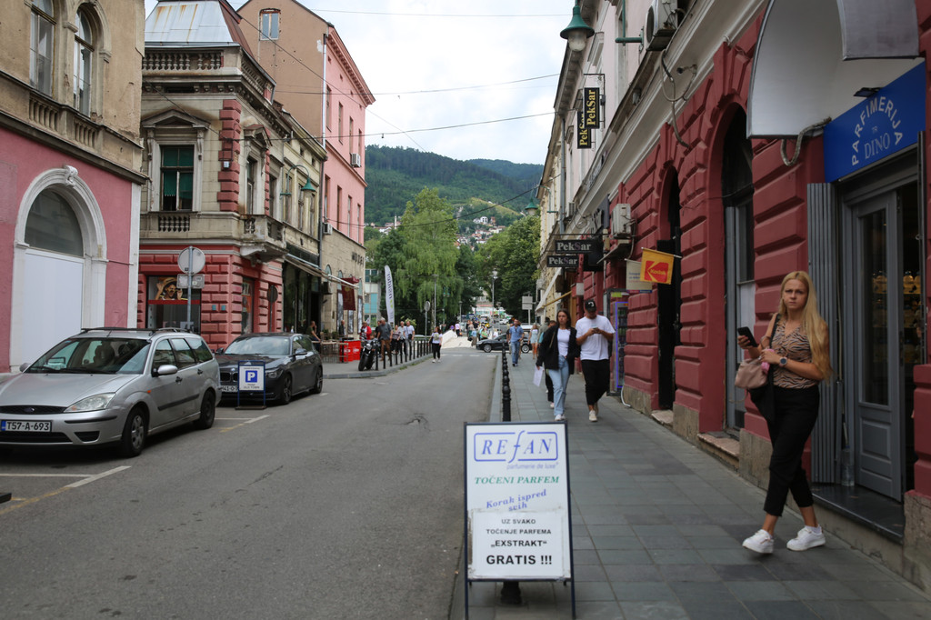 这条街道被分为东西两段,中间位置有一条“萨拉热窝东西文化相遇线”,大街地面上刻着一句话:萨拉热窝,文化交汇的地方。清晰地展示了欧式风格建筑与伊斯兰风格建筑的明显区别。