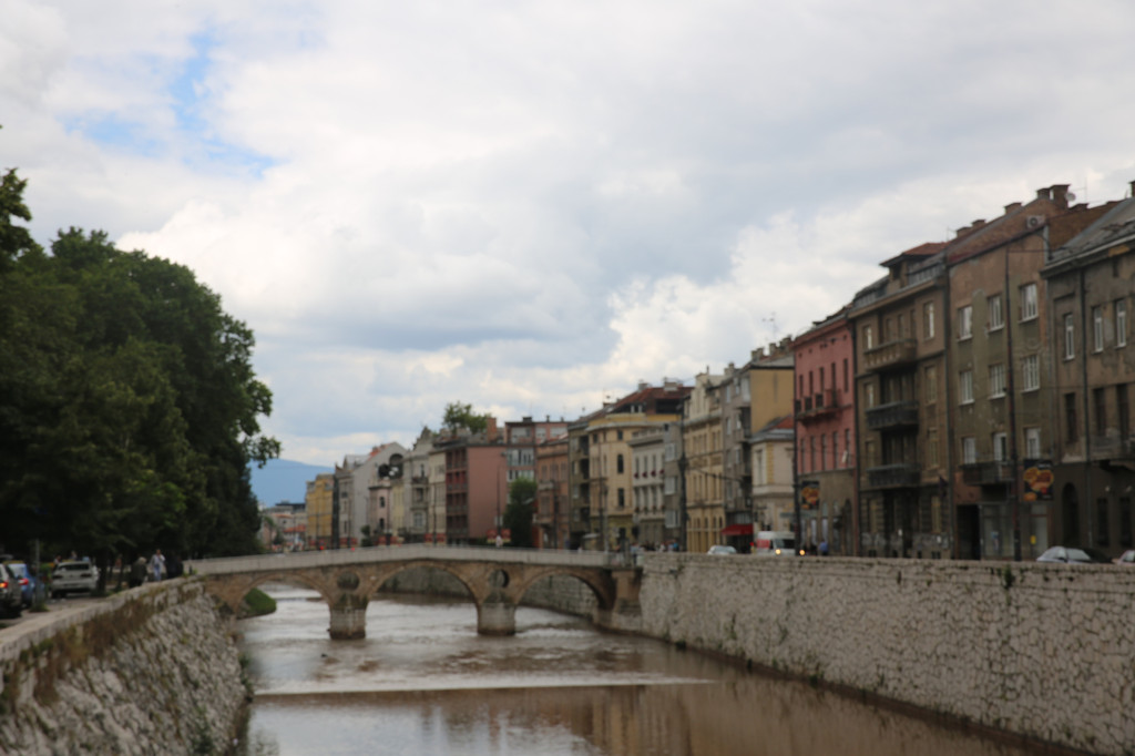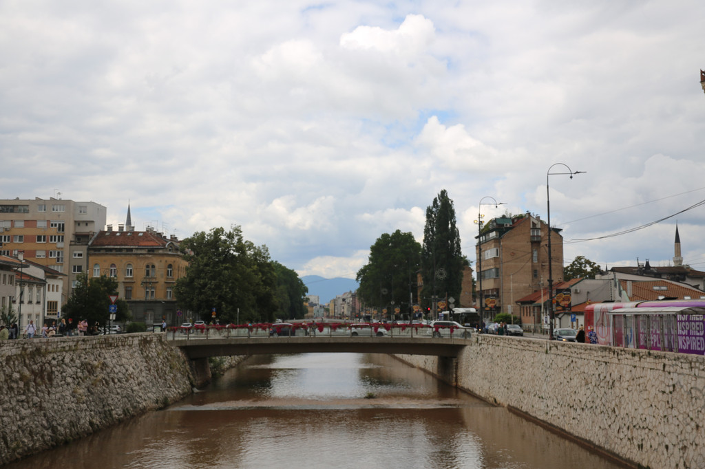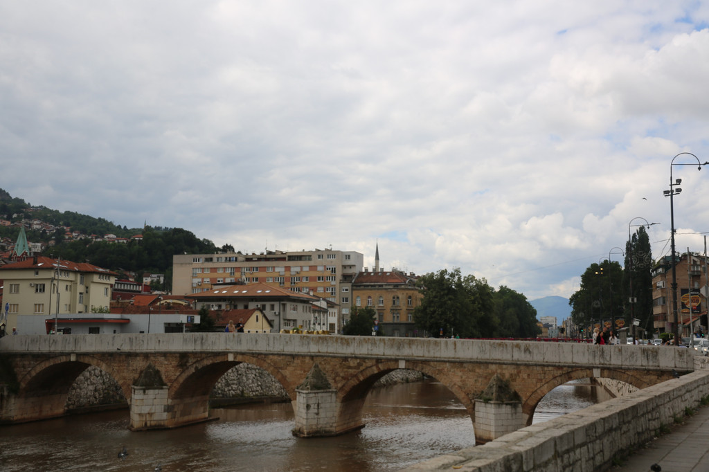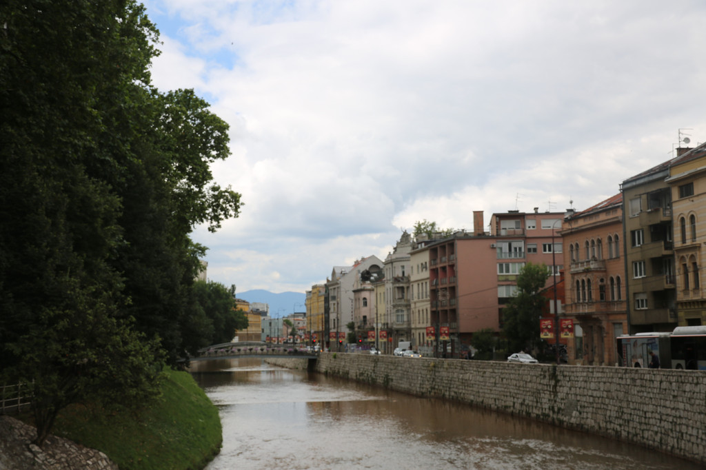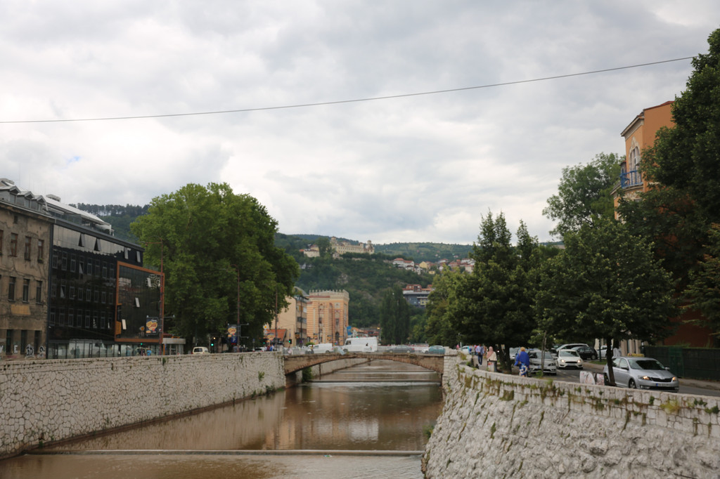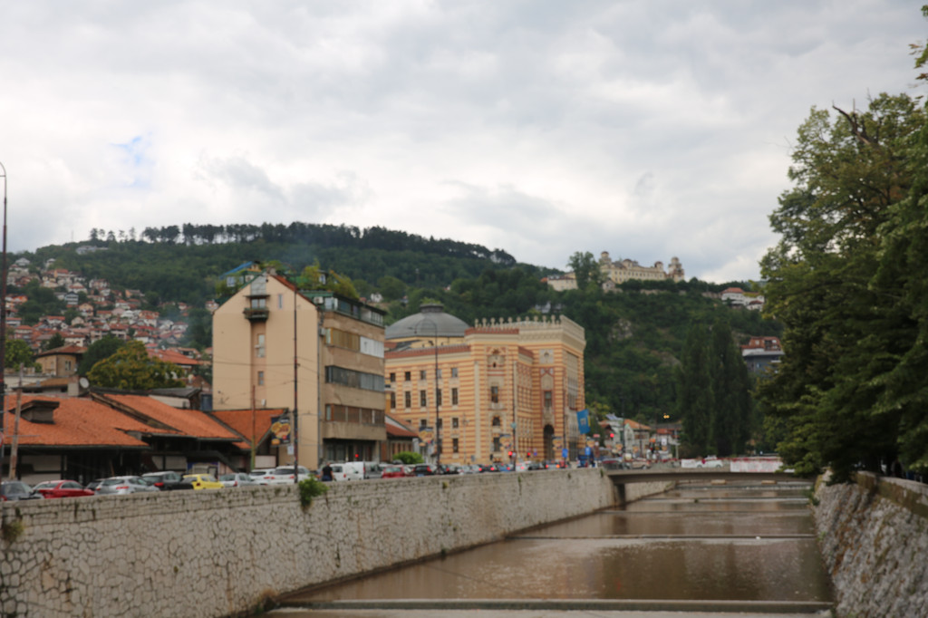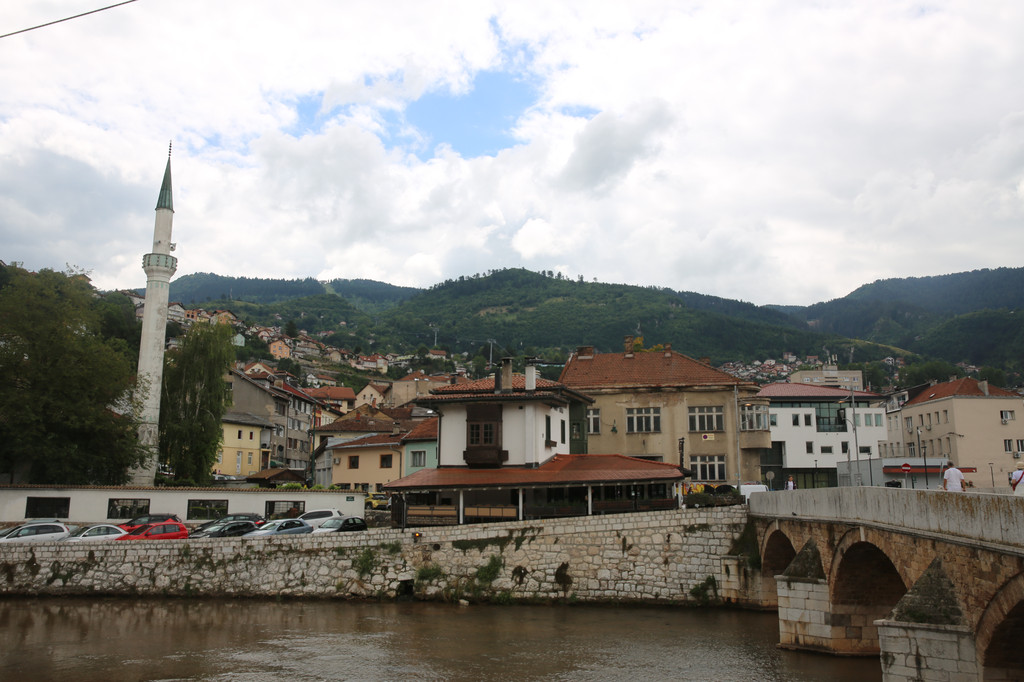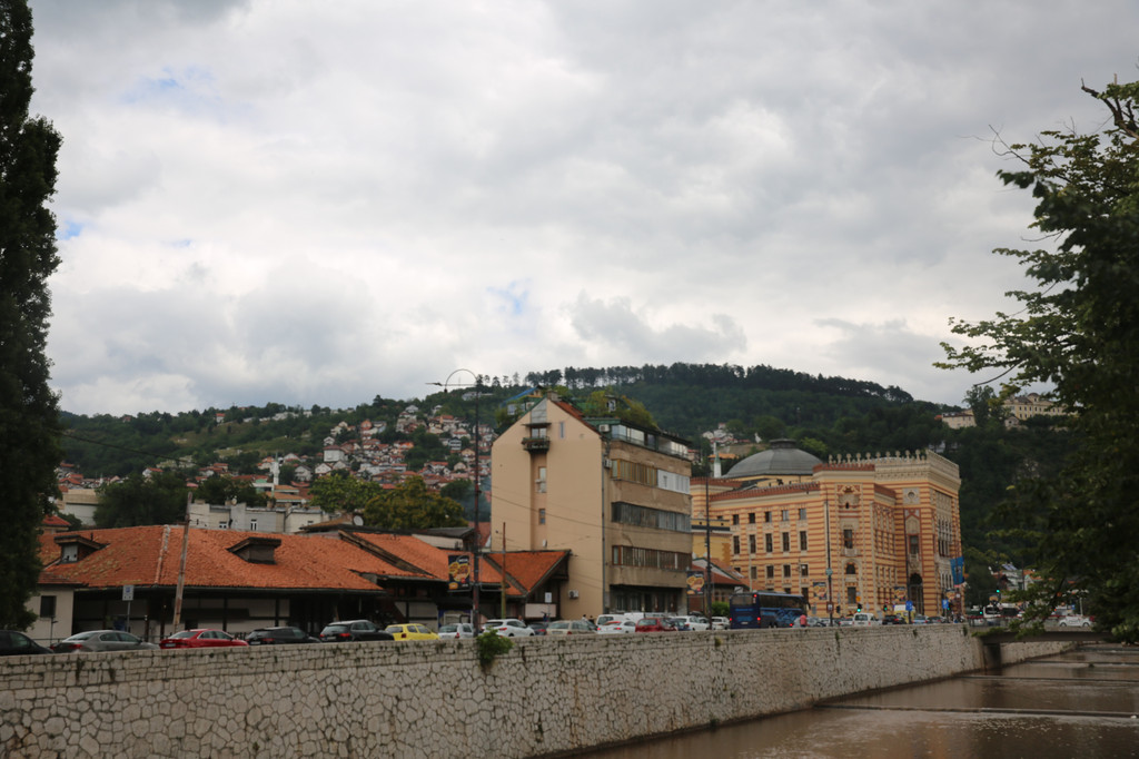 旁边就是东西走向的米里雅茨河,蜿蜒流过市区,将萨拉热窝分成了北面的老城和南部的新城。