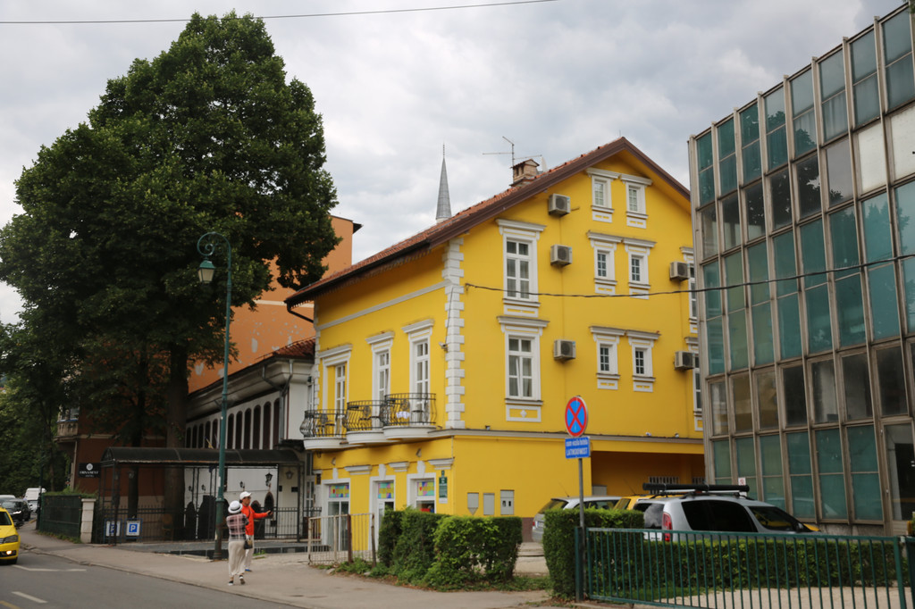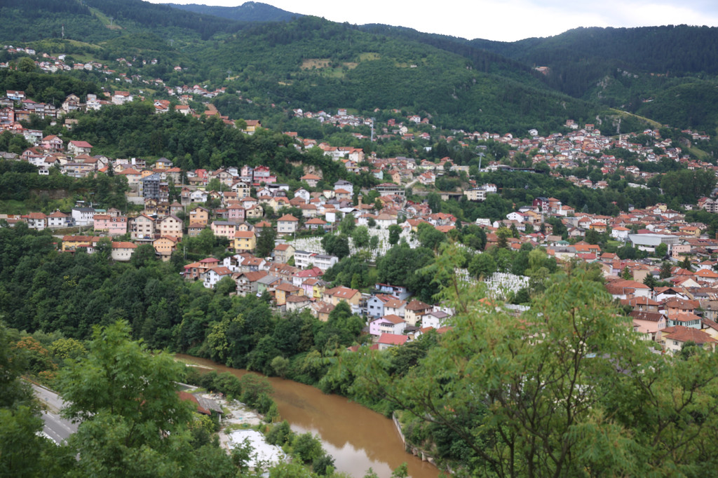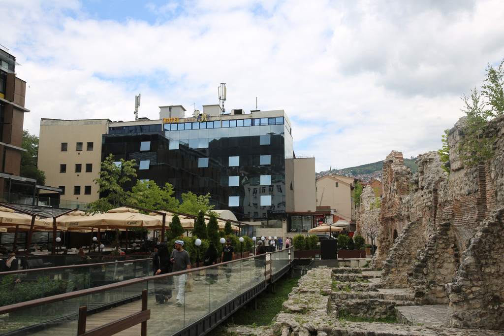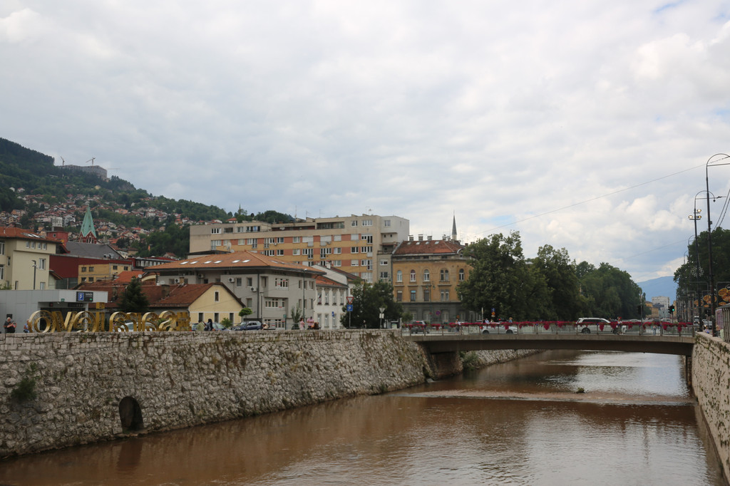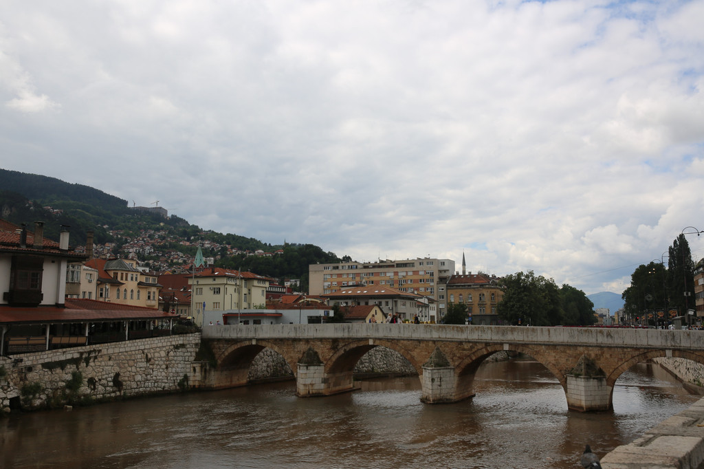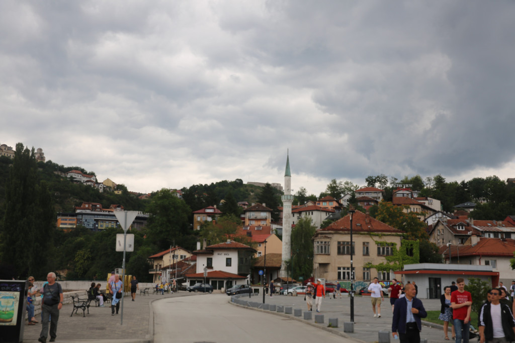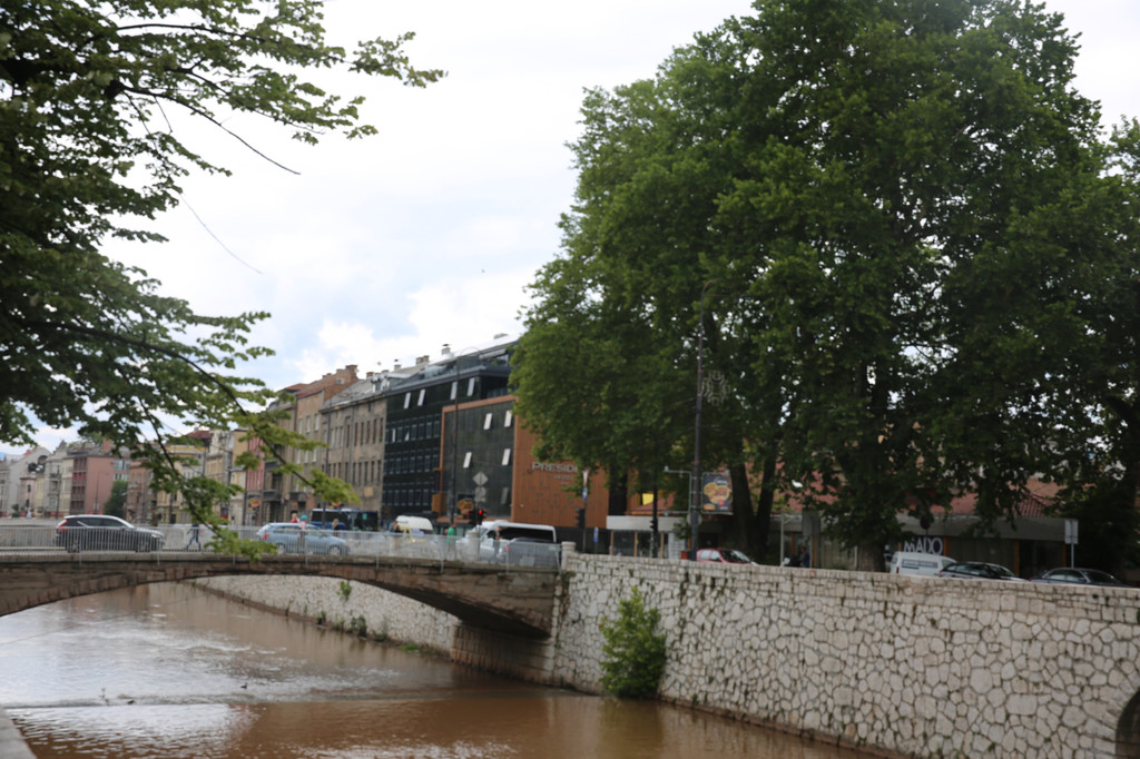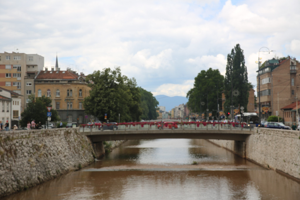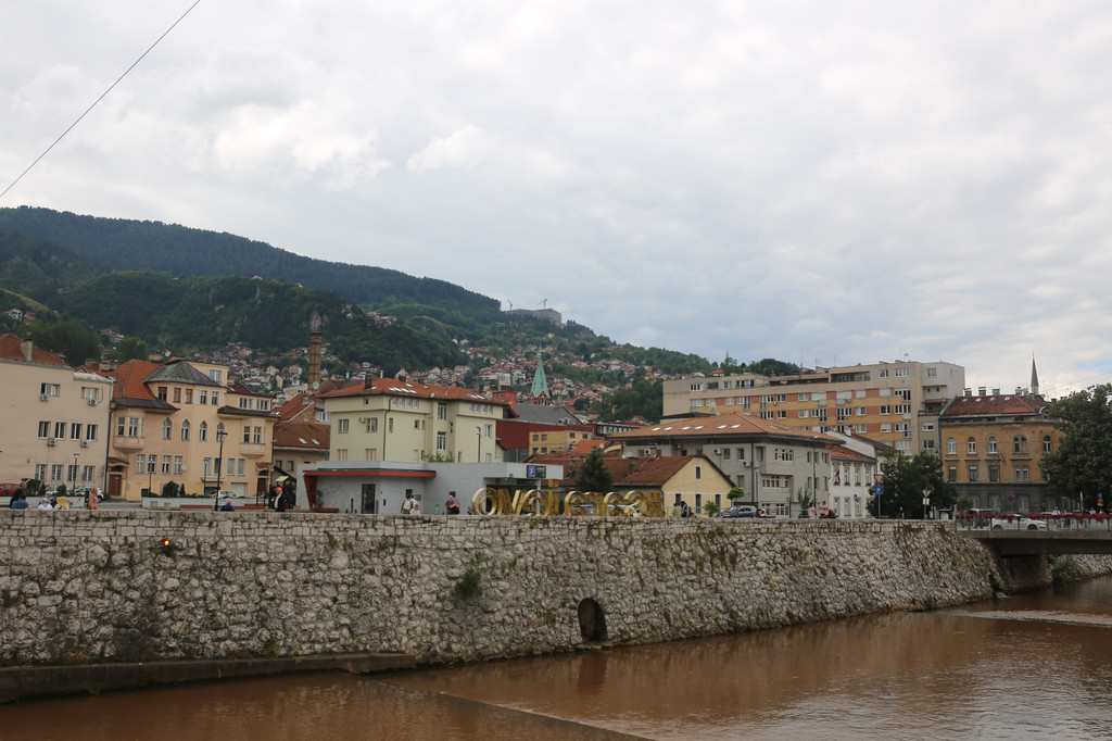 旁边就是东西走向的米里雅茨河,蜿蜒流过市区,将萨拉热窝分成了北面的老城和南部的新城。