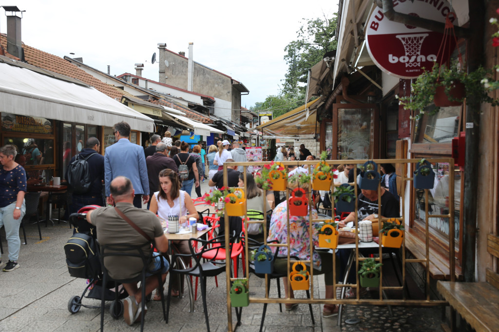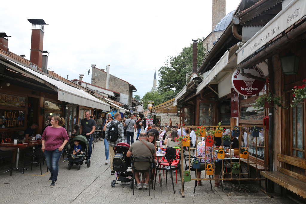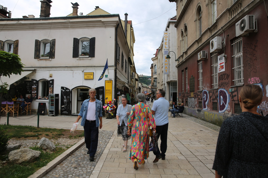 街上石块铺路,街巷纵横,在这里还可以寻觅到电影“瓦尔特保卫萨拉热窝”的场景:钟楼、铁匠街及绿色的圆屋顶等等。