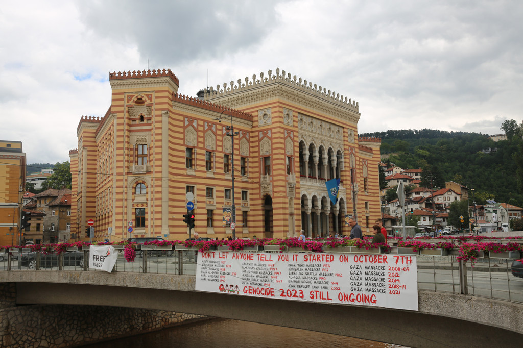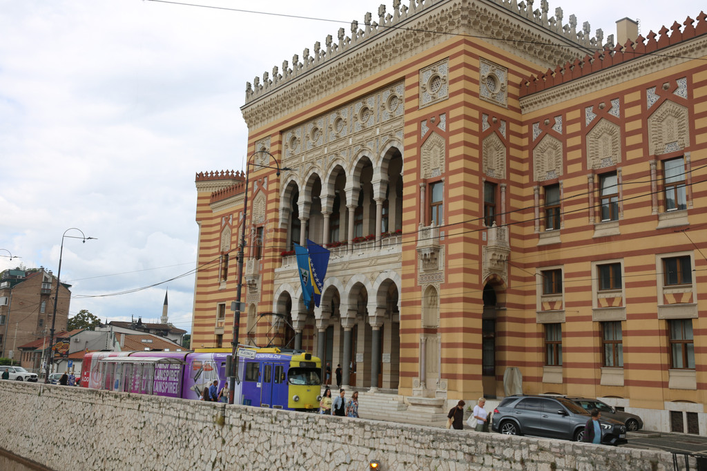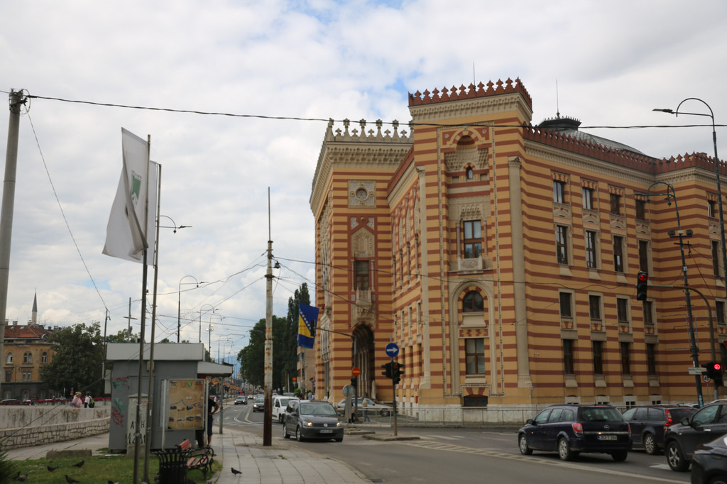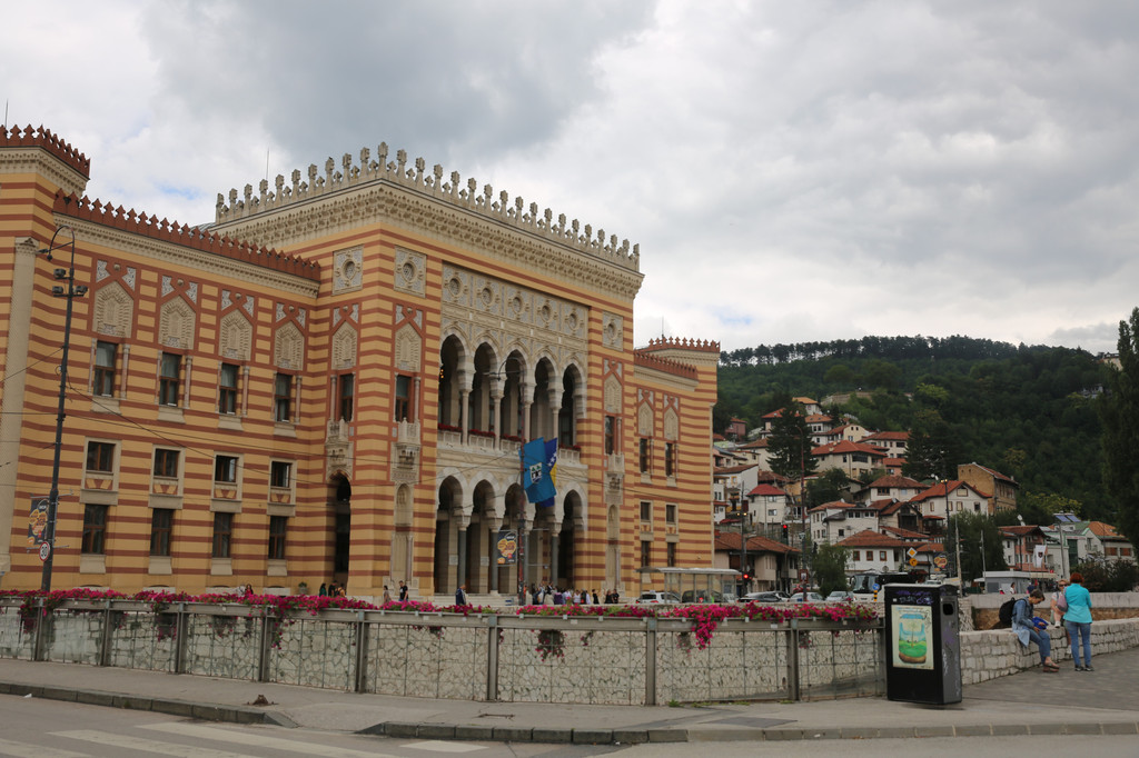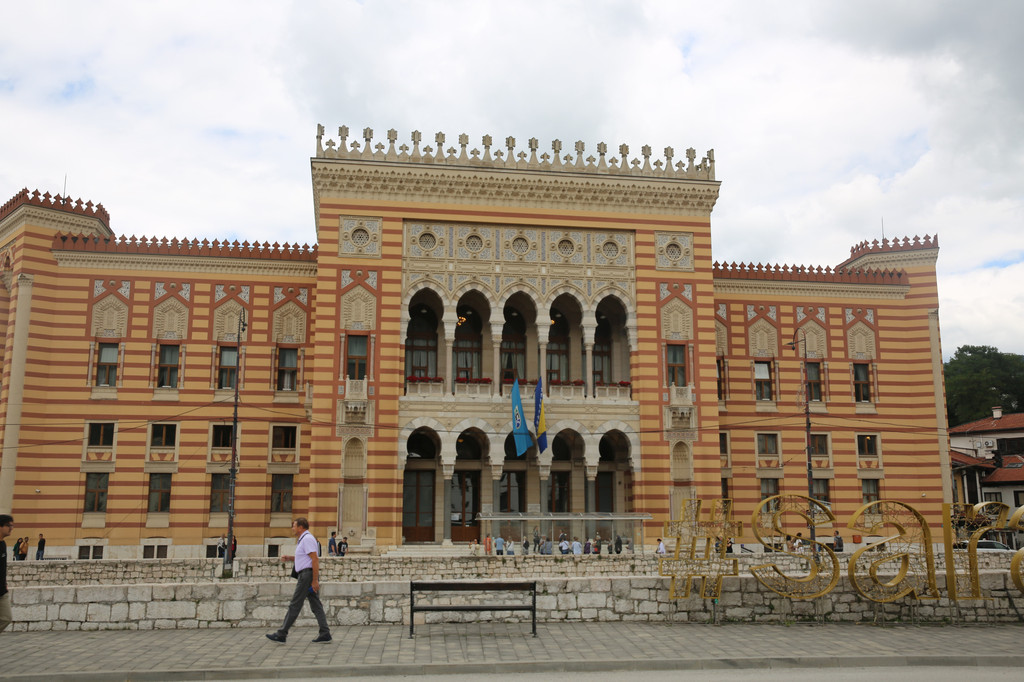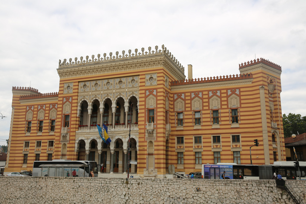 市政厅建成于1896年,精致的拱形窗户,锯齿形屋顶和观光阳台,是奥匈帝国占领时期萨拉热窝最奢华的建筑;二战之后,市政厅变成了波黑国立图书馆;波黑战争中,大楼遭纵火,近90%的馆藏图书毁于一旦。之后得到精心修复后2014年重新开放。市政厅内部多拱结构和彩色的玻璃天花板十分吸引眼球,可惜没有进去看看。