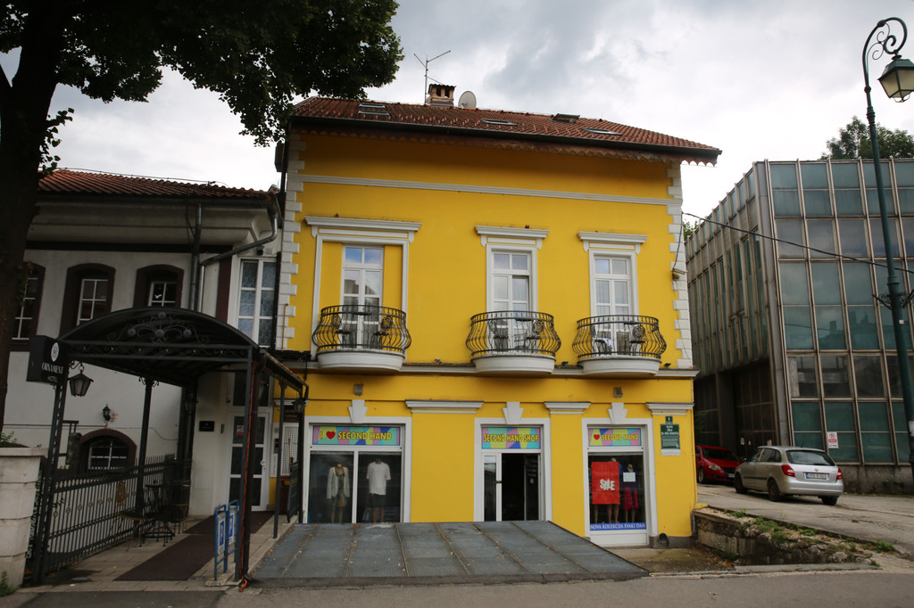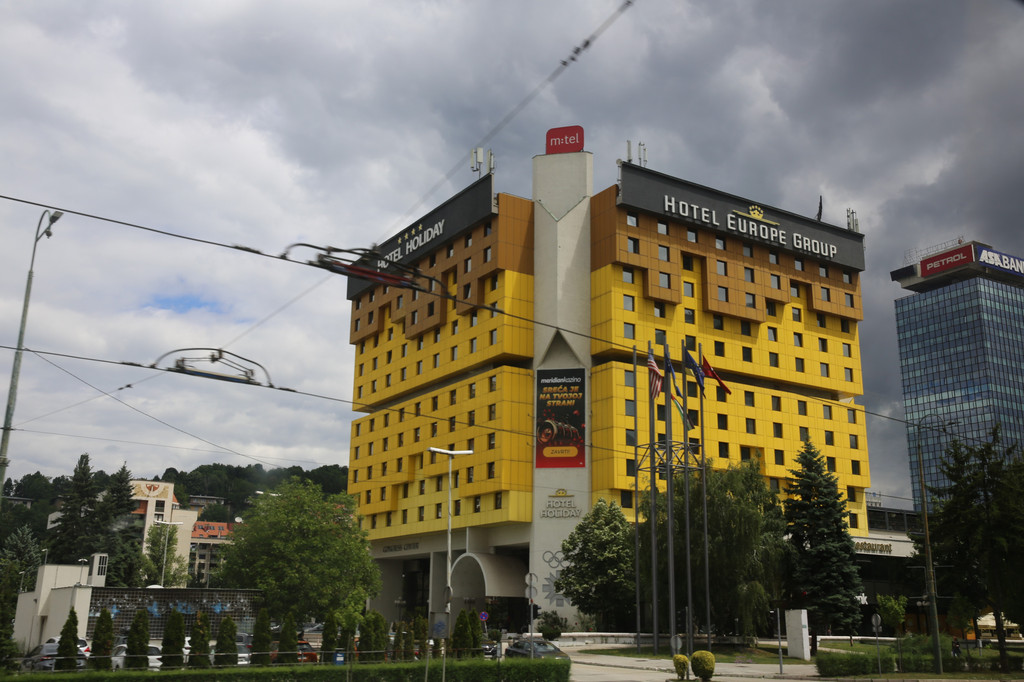 这座黄色的酒店围城战时名叫《HOTLE HOLIDAY》假日酒店。联合国维和人员及各国记者都住在此处。是当时萨拉热窝唯一安全的住所。