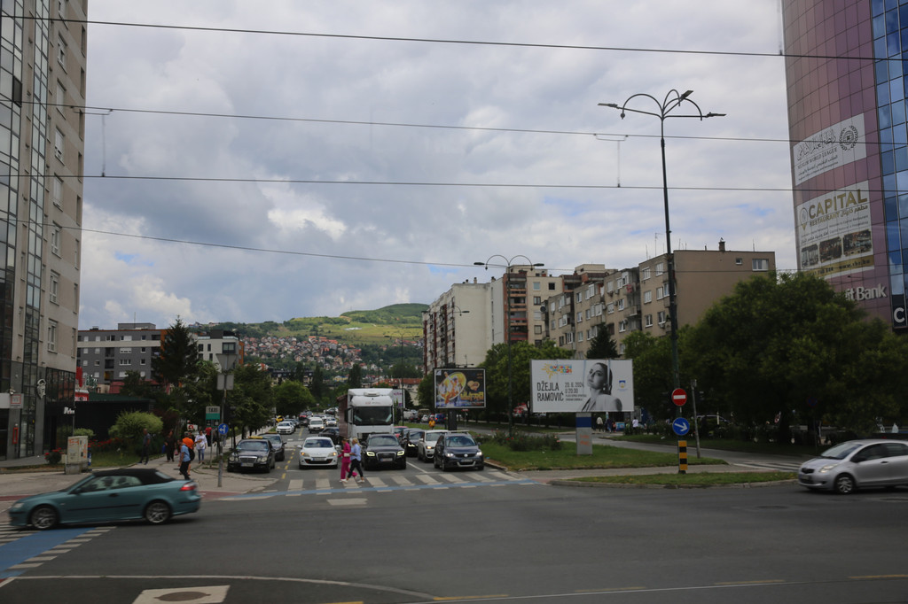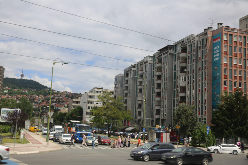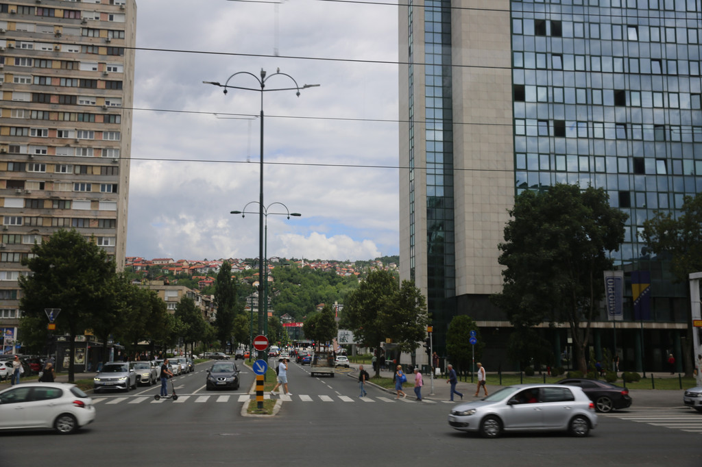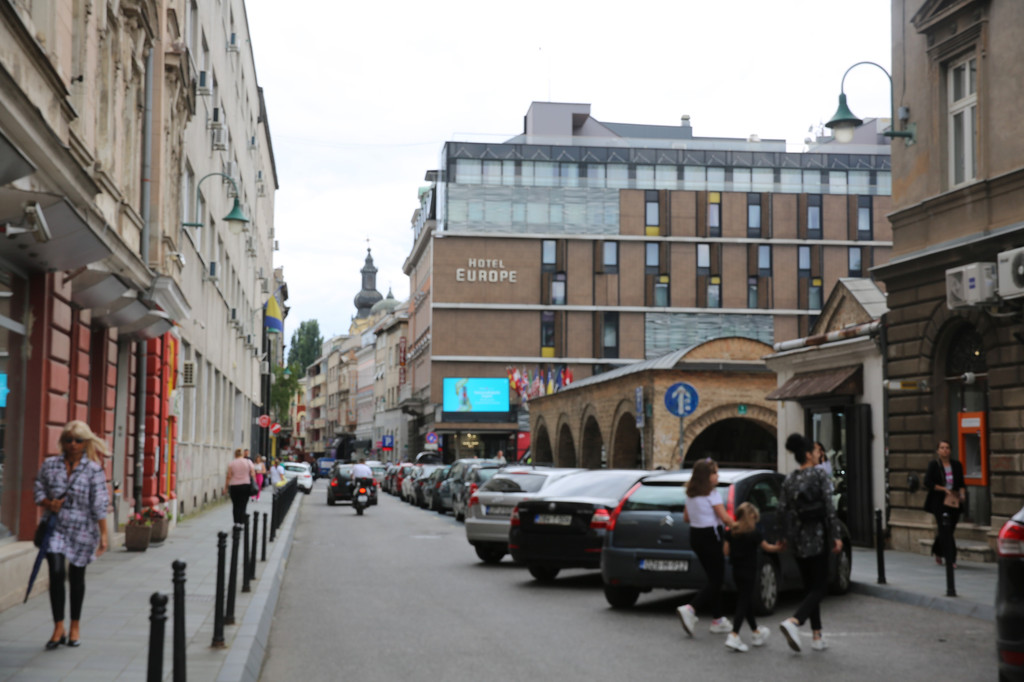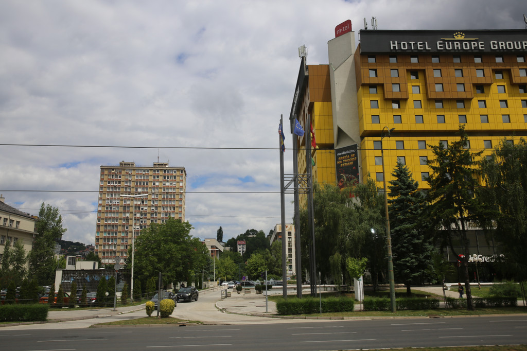 从莫斯塔尔坐车来到萨拉热窝时已经接近吃晚饭时,住宿在萨拉热窝机场附近的宾馆。第二天吃好早餐到附近走走,天气非常的好,这里是萨拉热窝的新城地区,
