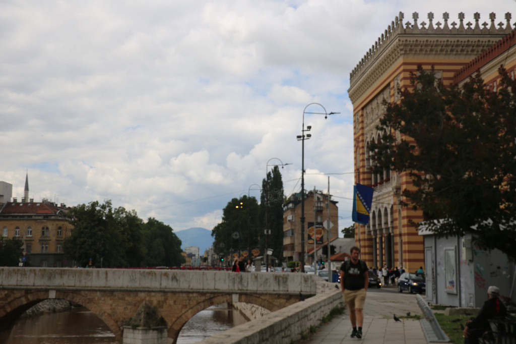 进入萨拉热窝老城后来到停车场,旁边就是米里雅茨河,顺着滨河路西行,不远就是市政厅。