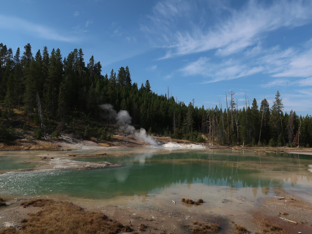 第四天:早饭后,游览黄石八字左半路线,依次:Norris,Midway Geyer Basin (牵牛花池、大棱镜等) West Thumb Yellowstone lakefishing Bridge Old Faithful宿Old faithful lodge