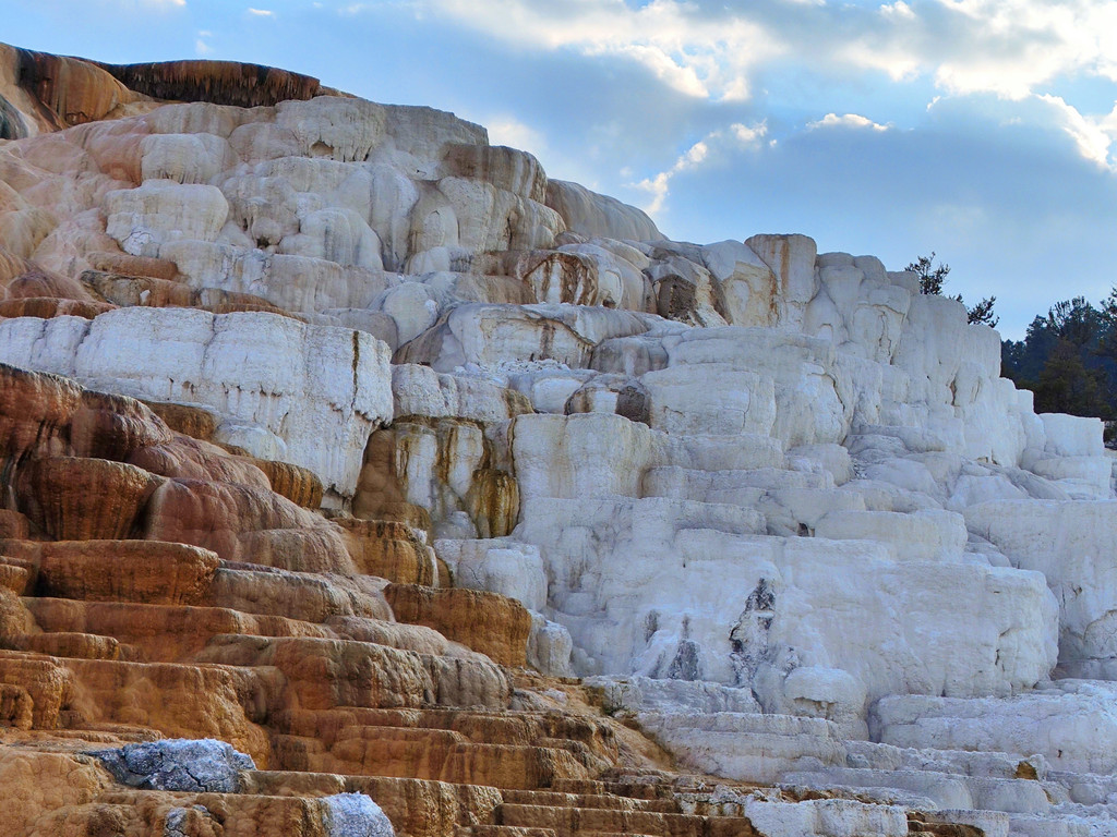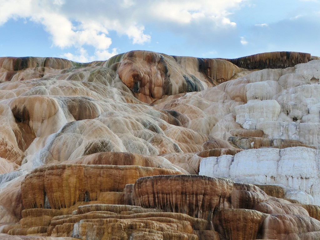 第三天:10:00搭轻轨,乘阿拉斯加航空航班12:26(塔克马机场)---15:09波兹曼(加拉丁机场)租车,午餐加采购,北入口进入黄石公园(127KM)从北入口进公园,游览(Mammoth Hot Springs)。宿北入口附近酒店速8加德纳,