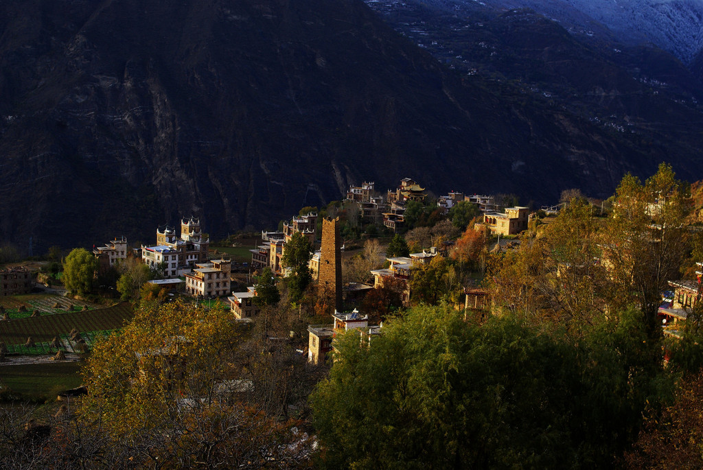 十多年后中路乡的变化还是挺大的,加之季节不同,往日的印象愈加的模糊,但不变的那威严耸立的碉楼,经过数百年的岁月流逝,依然屹立不倒。我们边走边问,但今天似乎碰见的人并不多,在一处很像切嘎家的藏居前我很仔细对照了当年的照片,发现房屋多了一个窗户。