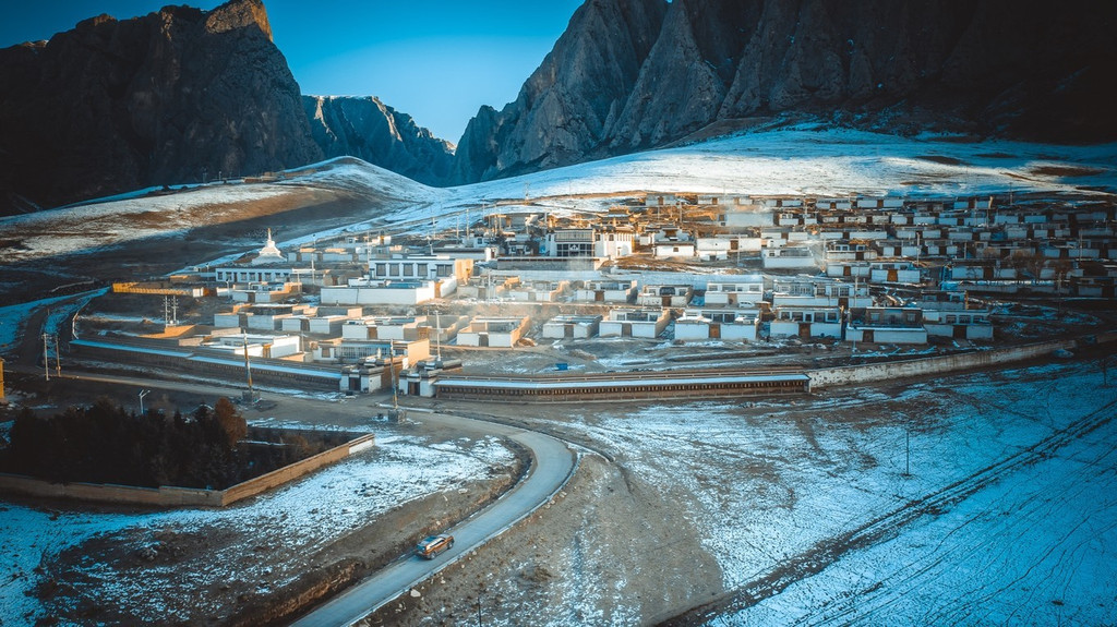 夏季的青青草场在10月底就成为了白雪皑皑的高原,独特的自然风光,鲜明的民俗文化和根深蒂固的精神信仰,使它成为青藏交界的一处文化秘境。