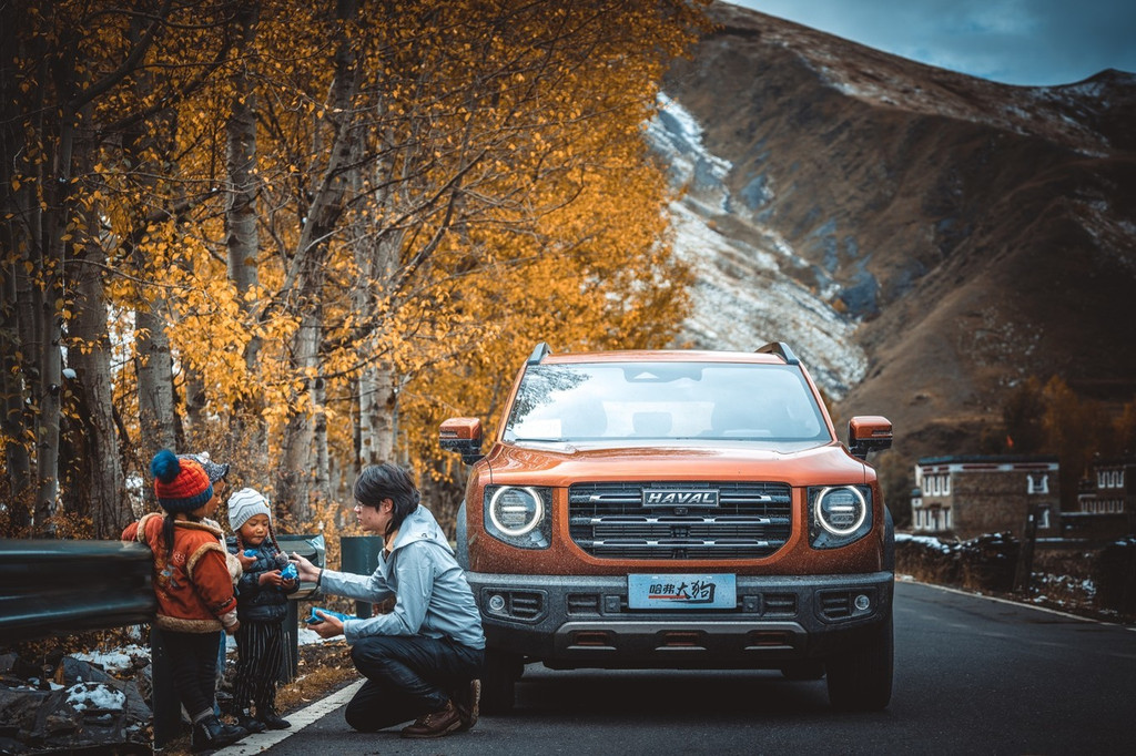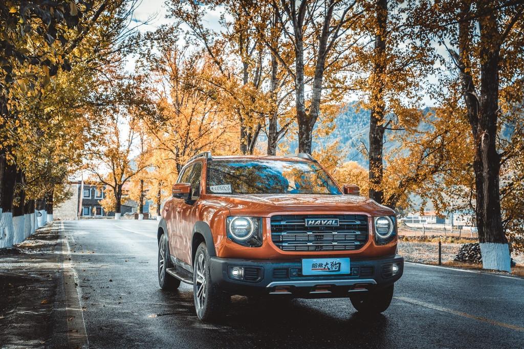 和眼前的秋色更搭配的还是大狗的全新橙色外观,前脸采用了很复古的设计,线条非常硬派,加上一个外观粗犷的长方形进气格栅和银色挡泥板的前包围,越野气质彰显无遗,这是我们年轻人表达态度的一款车,我们不止需要循规蹈矩的上下班通勤,更需要大狗来承载起我们的远方和梦想。
