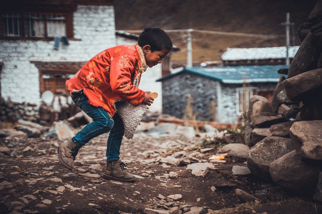 在夕阳间歇光中各莫寺小喇嘛的快乐剪影。