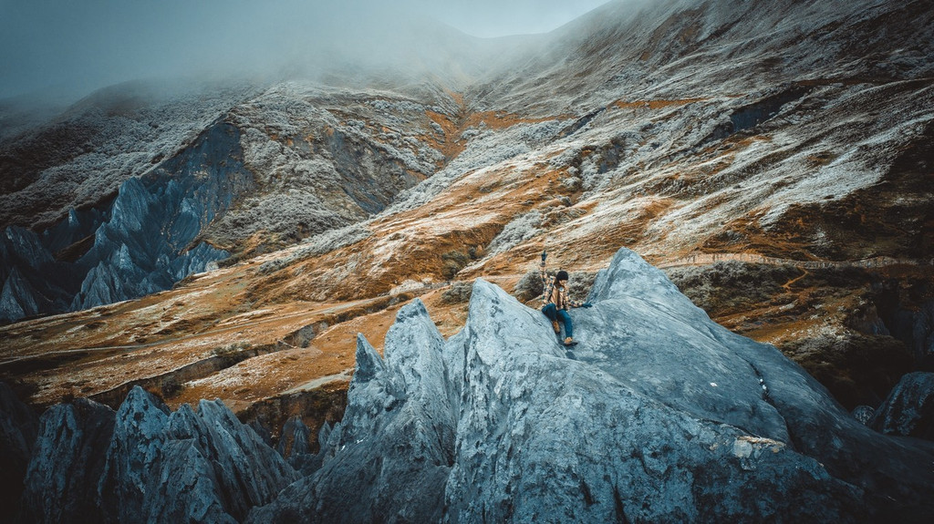 从鱼子西山顶下来,天气还是没有任何好转,云遮雾绕,看不到丝毫阳光,这样的天气对喜欢风光摄影的我们来说实在有些糟糕,但也没能影响到我们心情,吃完午餐,坐上大狗驱车继续北上,一路去往墨石公园。
