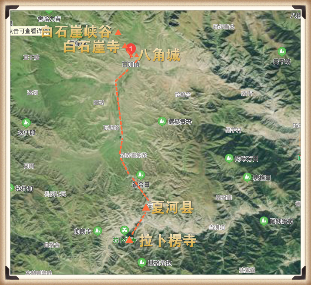 甘加秘境交通:距离最近的夏河县30公里,行驶时间半小时,导航地址“白石崖寺”