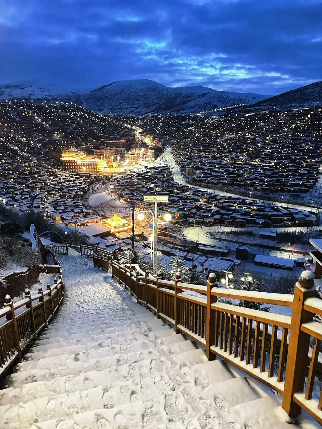 4.观景台沿着坛城左边的路往上走就能抵达,在这里可以俯瞰佛学院的全景,出片效果很棒。