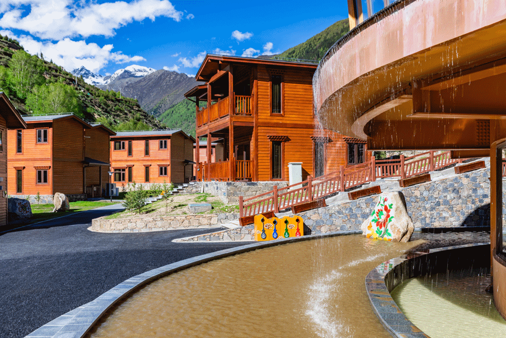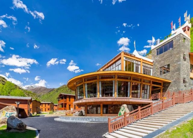 斯古拉文旅城,位于四姑娘山风景区长坪沟沟口,占地面积约为80亩,建筑面积约为3万㎡。