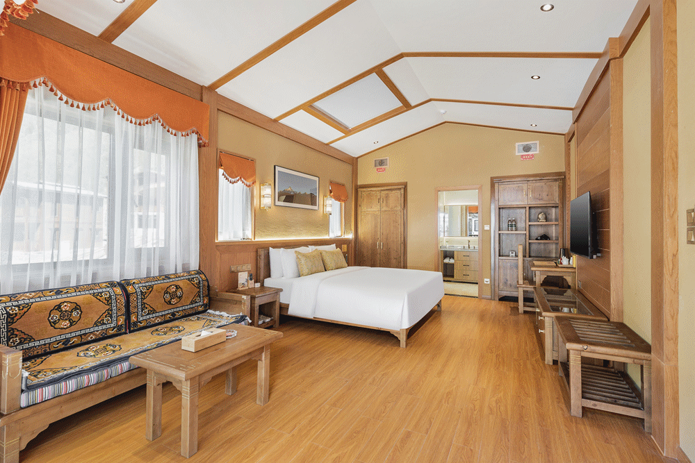 酒店拥有86套具有藏式特色的别墅,古朴尊贵,高雅清致,文化元素点缀其中。