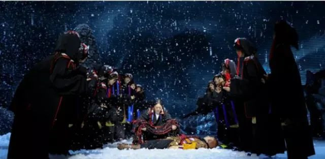 以非物质文化遗产“卡斯达温”歌舞形式,集中体现悲壮、刚毅、 自信和不屈藏羌人民家国情怀。