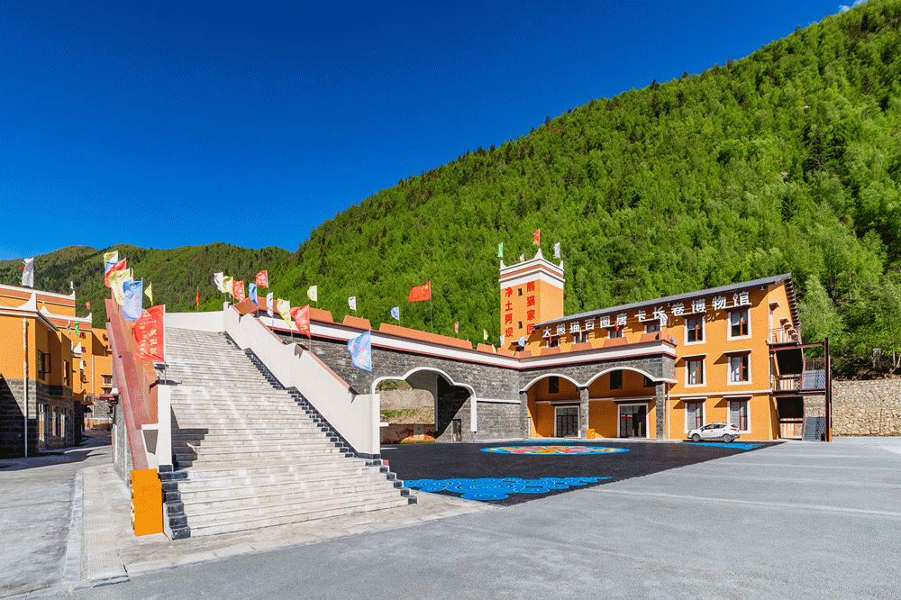斯古拉文旅城经过容中尔甲五年的倾力打造,包括大熊猫百图唐卡长卷博物馆、斯古拉帐篷城、容中尔甲演艺中心、斯古拉庄园等等。