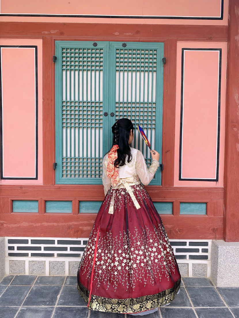吃饱喝足后当然是美美的拍照啦。韩服租赁在景福宫外一条街上都有,价格也相差不大,我们找的是“玩天韩服”可以预先预约。
