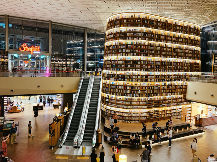 江南COEX MALL去年新开的星空图书馆一进门就被震撼到了,环绕四周那几座书架足有十几米高,出众的时尚感与设计感,却能给人极其独特的体验。