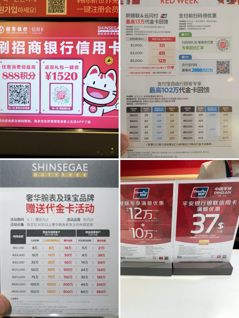 ----每个免税店都有各自的优惠,花样繁多,眼花缭乱。