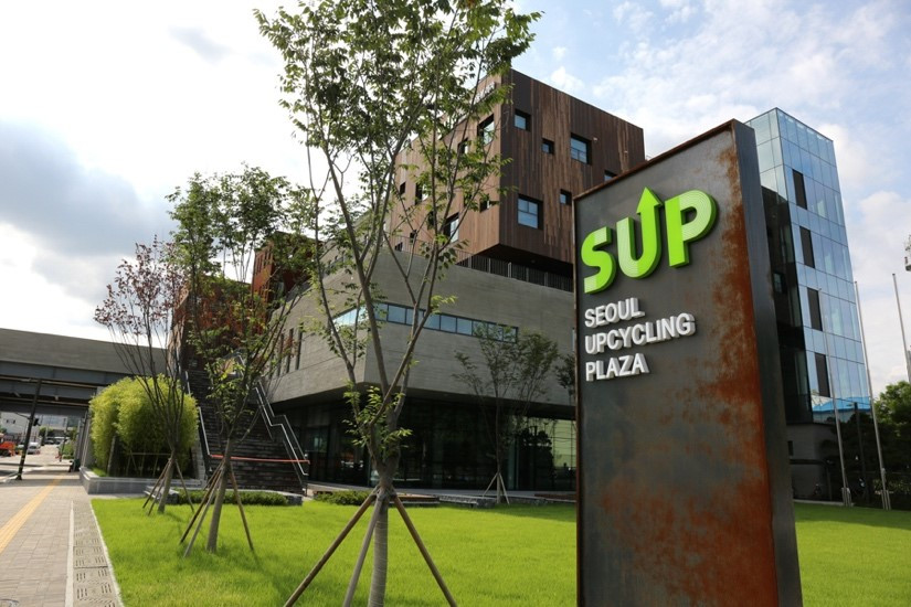 成立于2017年的首尔再生中心(The Seoul Upcycling Plaza),是首尔市“零浪费”绿色产业计划的一部分,目标是到2030年成为资源循环城市,市内垃圾再生率达到75%,废弃的垃圾能够就地产生新价值,无需再运往首尔之外的其他地方进行处理。这座位于城东区的建筑占地面积约16000平方米,地上5层,地下2层,是一个集收集、分类、将废弃物分解为可重复使用的新材料以及销售再生设计产品等功能于一身的综合性场所。