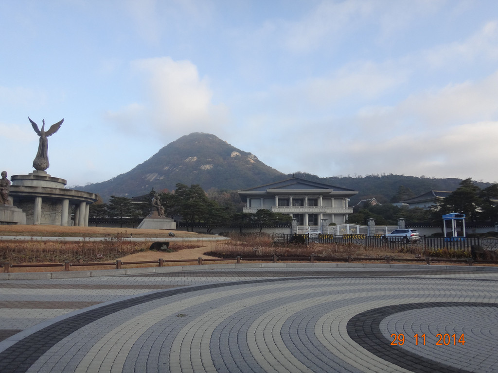 1.青瓦台,外观,周末的早上时候青瓦台附近的红绿灯不亮,按警察指示过马路即可。