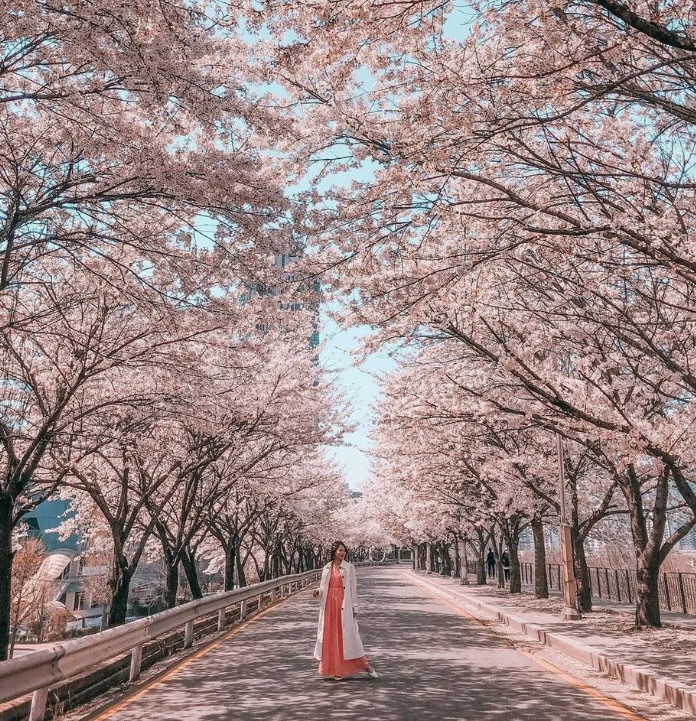另一个美丽的湖边樱花胜地是安养溪旁的安养川樱花步道。这个地方非常适合下午散步,有超多的拍照打卡景点和风景如画的景色。有时间的话可以喝点饮料,吃点小吃,然后在草地上坐下来享受风景优美的野餐!地址:京畿道安养市万安区石水路