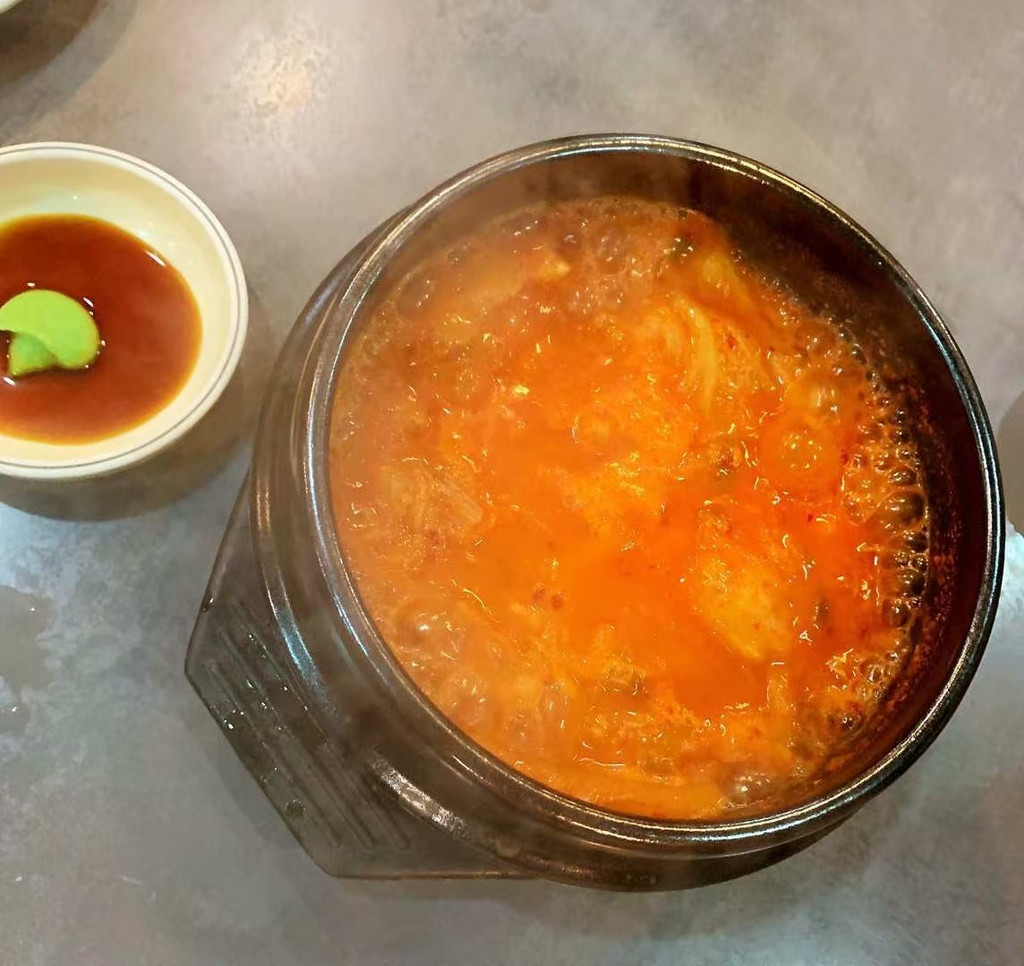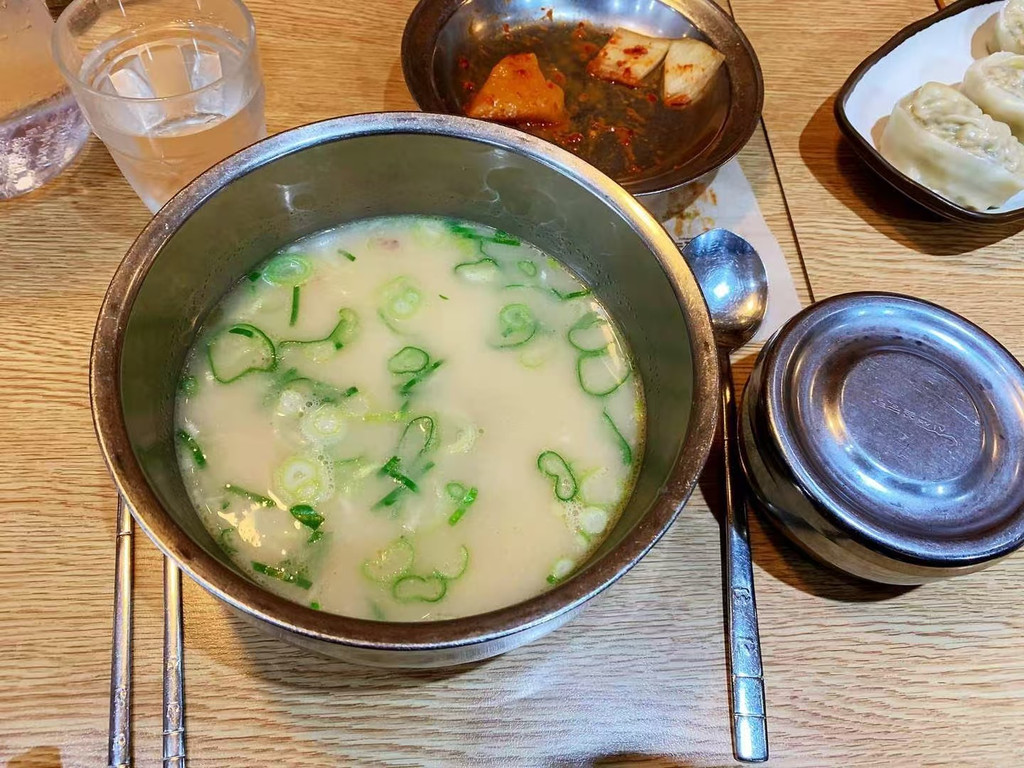 Day 1 , 韩亚航空从广州直飞到首尔的都是凌晨飞机,由于飞机晚点,到首尔已经是凌晨6点了,酒店订在了弘大,直接坐地铁到弘大站。这家的雪浓汤不错,天凉的时候喝碗热腾腾的汤真的很赞,店就在弘大附近,泡菜是自助的,不过要自己剪,很有意思,饺子的造型很像包子,总的来说,来韩国的第一餐不错。