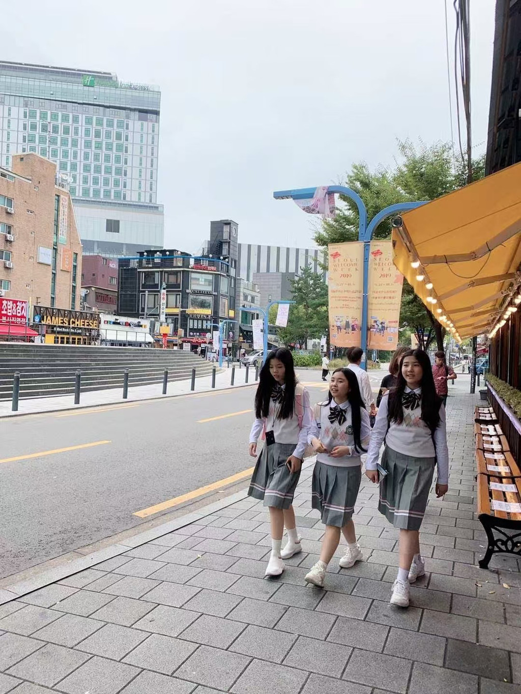 因为头天晚上在飞机上没睡好,直接在酒店睡到下午了,下午就在附近逛,10月的首尔有点凉,微微小雨,外面的树叶开始有点泛黄,很有秋天的感觉,沿路还看到一些女高中生,穿着校服的样子,感觉真的很韩剧feel...