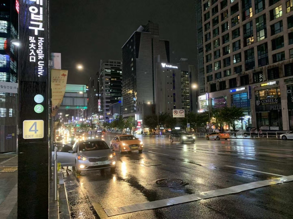 一直逛到晚上,弘大下起雨来了,在弘大附近真的很多吃的店,随便进了一家烤肉店,服务员居然是一位来自东北的大妈,热情得很,然后告诉我们这边附近经常有音乐表演,让我们可以去看看,这边的烤肉和烤鱼不错,不过都是已经帮我们烤好送上来的,味道还是可以,还以为真的满大街都是那种大长腿韩国欧巴,怎么说呢,咱家的中国大叔貌似也不赖O(∩_∩)O哈哈~