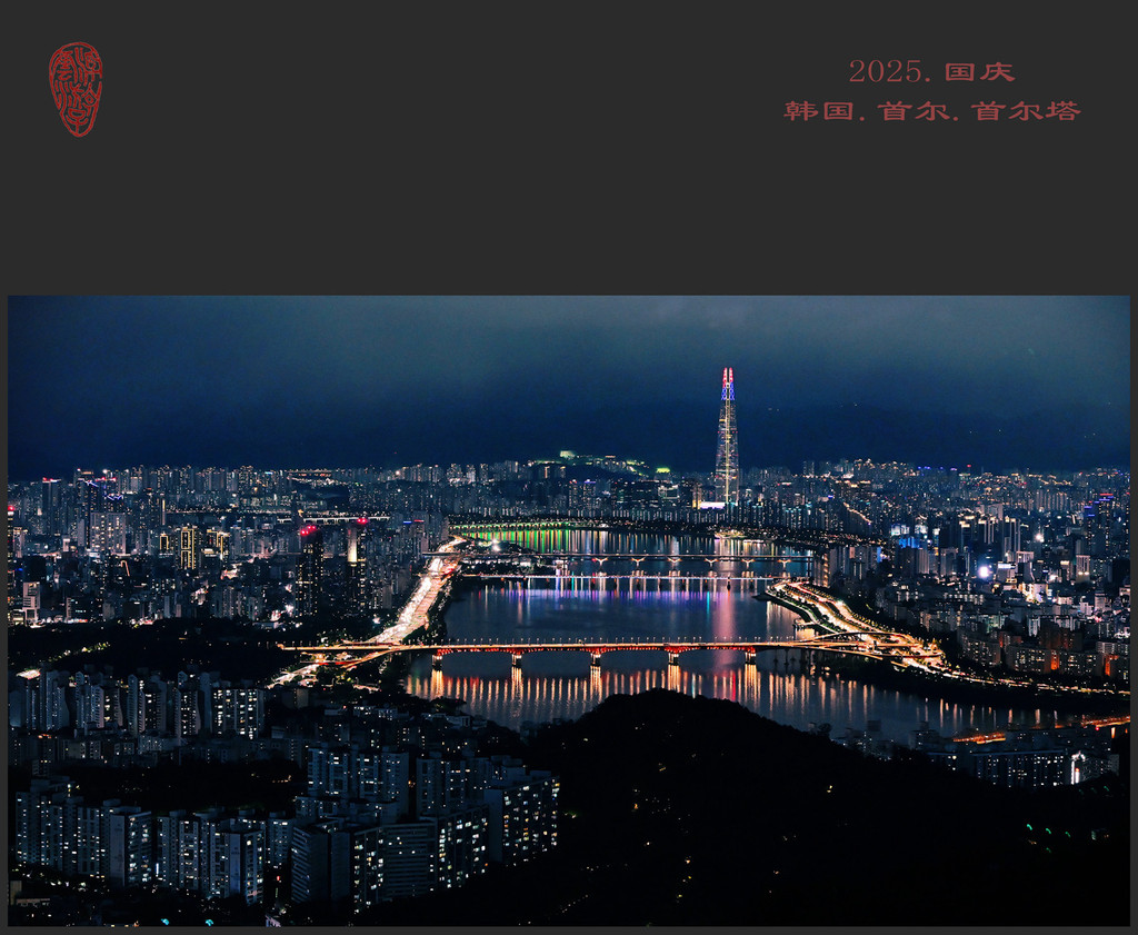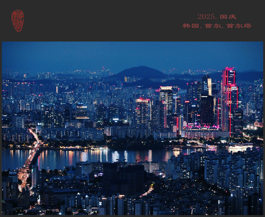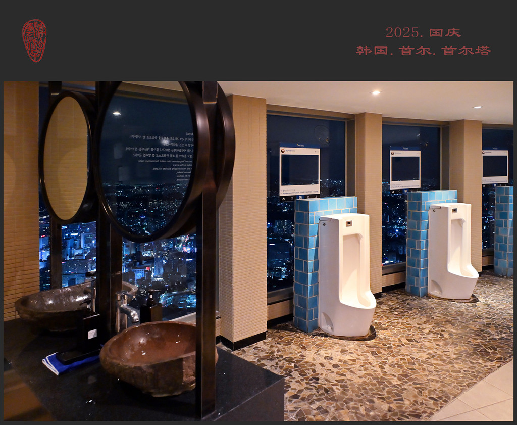 一般旅游城市都会有标志性的高塔高楼,既作为城市地标,又可让游客一览城市全貌,所以首尔塔必须游玩一下,这也是我此行唯一买门票的地方,每人16000韩元,用某程订购还可以优惠。为控制人流,买票后凭票号顺序登塔,等候时间可以在首尔塔底座逛逛,超市、文创店、咖啡馆、餐饮店以及观景平台等都是人潮涌动。我们上塔的时候天已经黑了,可以360度环顾首尔夜景,城市灯光璀璨,汉江从中穿过,粼粼波光映着都市灯火,一座座桥梁飞架而过。塔上共三层,有个很高级的餐厅,还有一个全透明的厕所,面对着城市方便,感觉可以一泄千里,被称为天空卫生间,也成了争相打卡的地方。