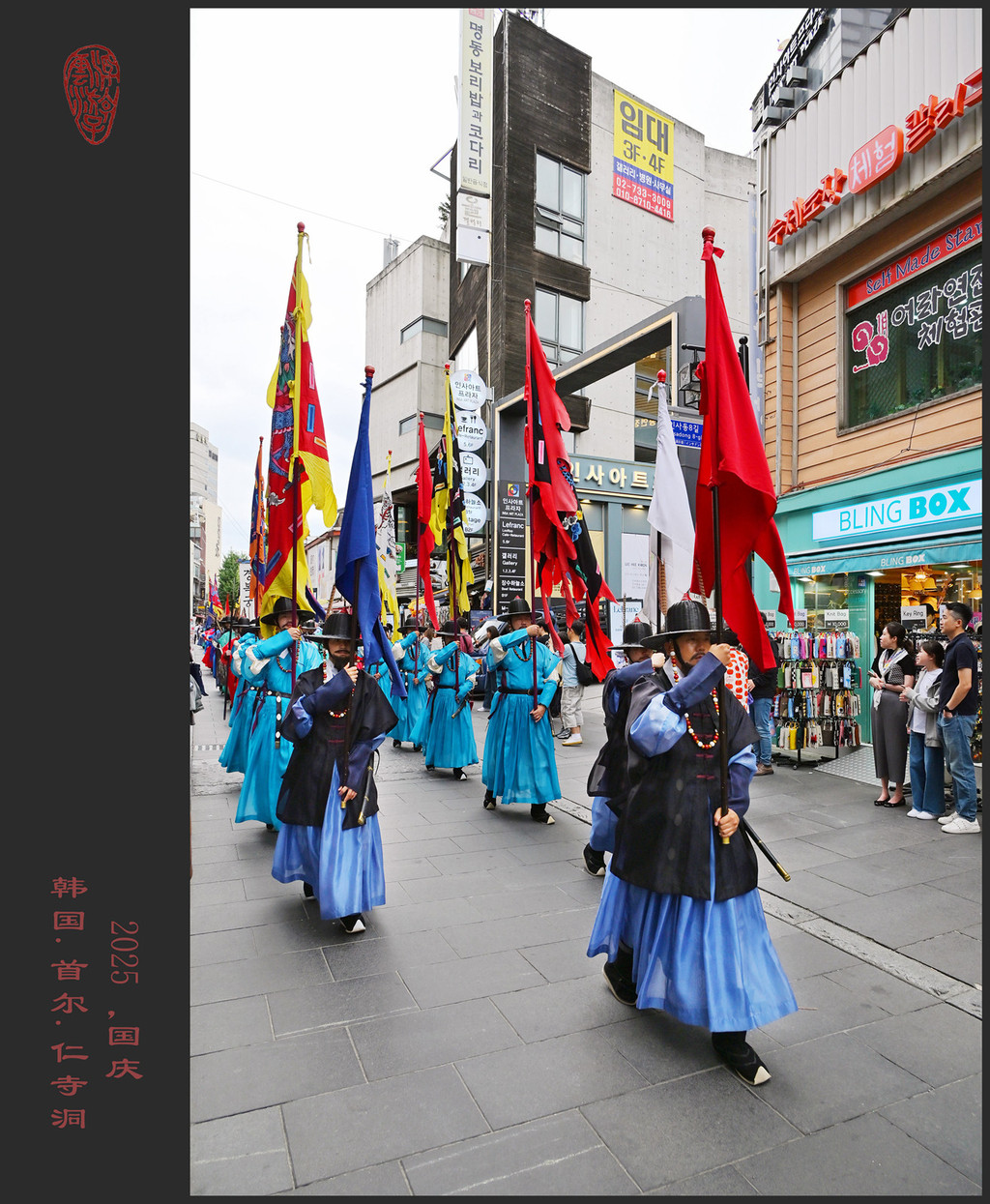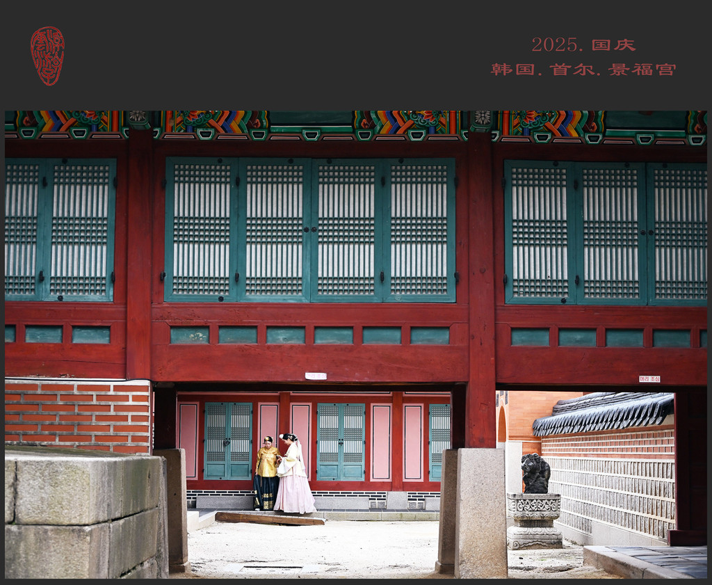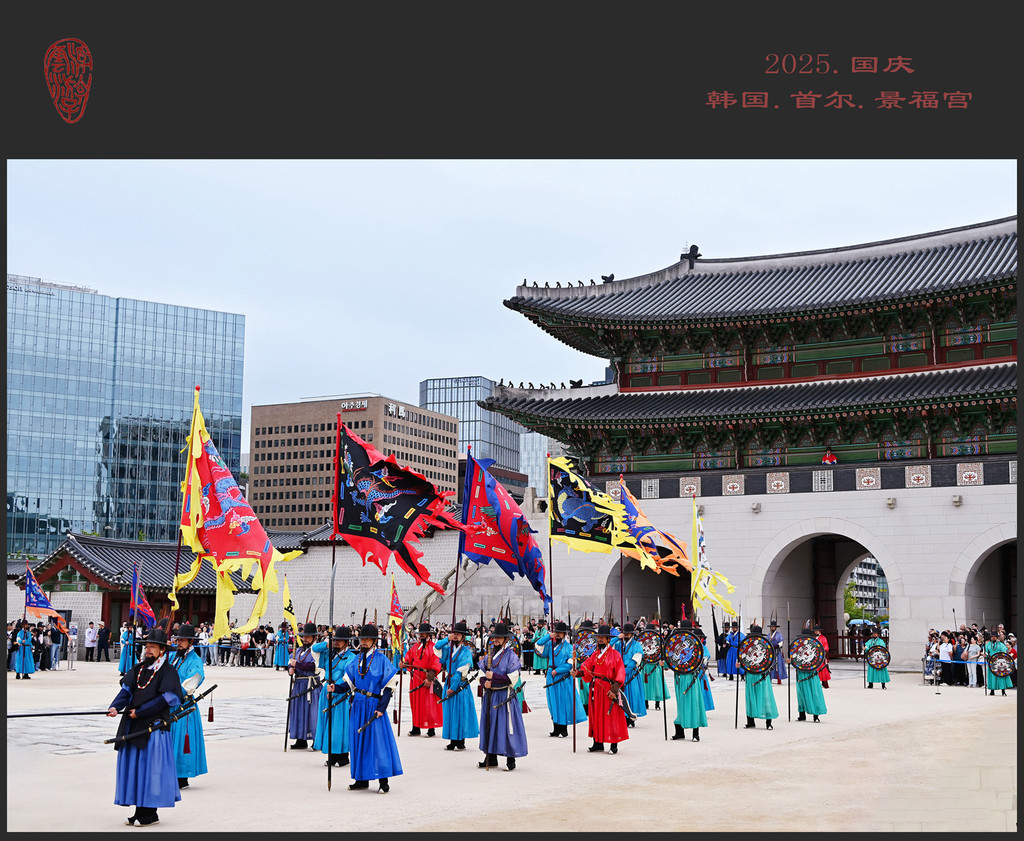 为了推广韩服和韩国文化,身着韩服逛景福宫可以免3000韩元的门票,但是租赁韩服应该不是免费的,所以不知道这笔账该怎么算。赶上韩国的中秋节直接免票,我也省了要不要体验韩服的纠结。来游玩的欧美人大多换上了韩服,看着金发碧眼人高马大的男女老外穿上高丽传统服饰,还扎堆合影,有种违和的喜感。光化门和德寿宫之前的广场有王室守卫换岗交接仪式的表演,虽然简单但有一定的仪式感,算是小小亮点。