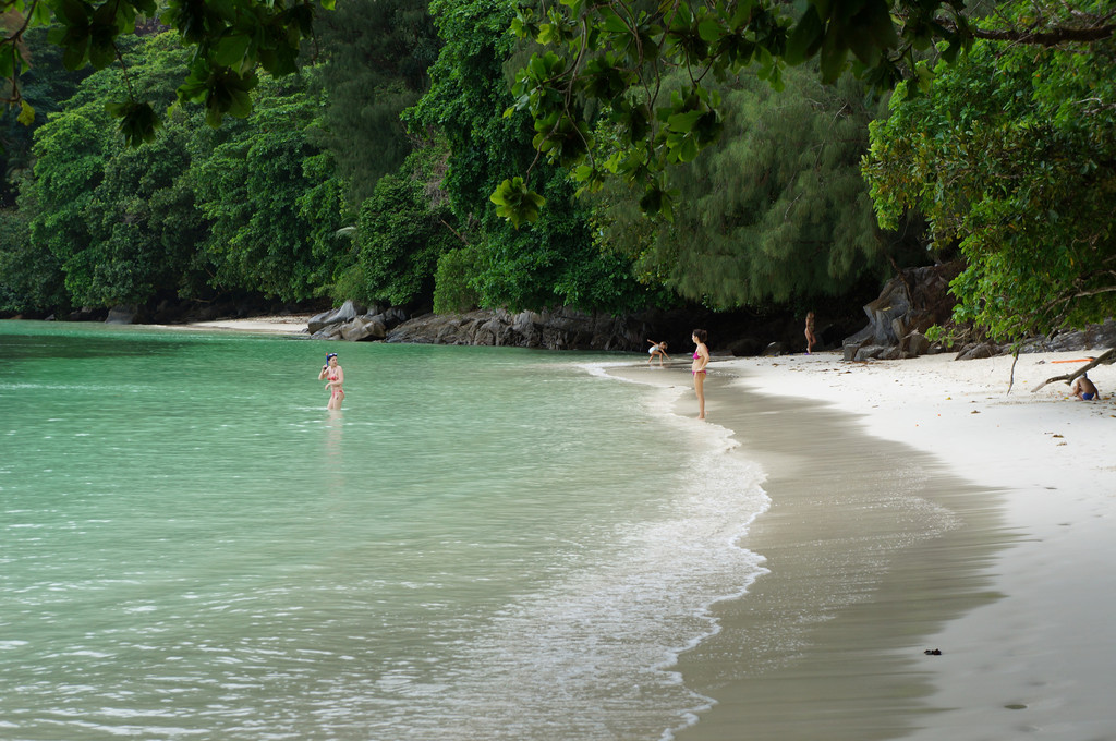 2)衣服准备时以颜色鲜艳的、易干、薄款防晒长袖为主。鲜艳为了照相,毕竟是给自己以后的一个美好回忆,暗暗地颜色太不上镜了;易干是因为在海边,经常着水,湿乎乎的容易着凉呀;薄款长袖,是防止下雨,暴晒时穿着。本人带了2件长袖,每件都随身携带,结果发现在突然间的阵雨和暴晒时起到了关键性作用。北京的动物园批发市场,由于季节原因,现在正在甩货,这种长袖便宜的摊位,才10元,各种颜色,不妨背上2件。