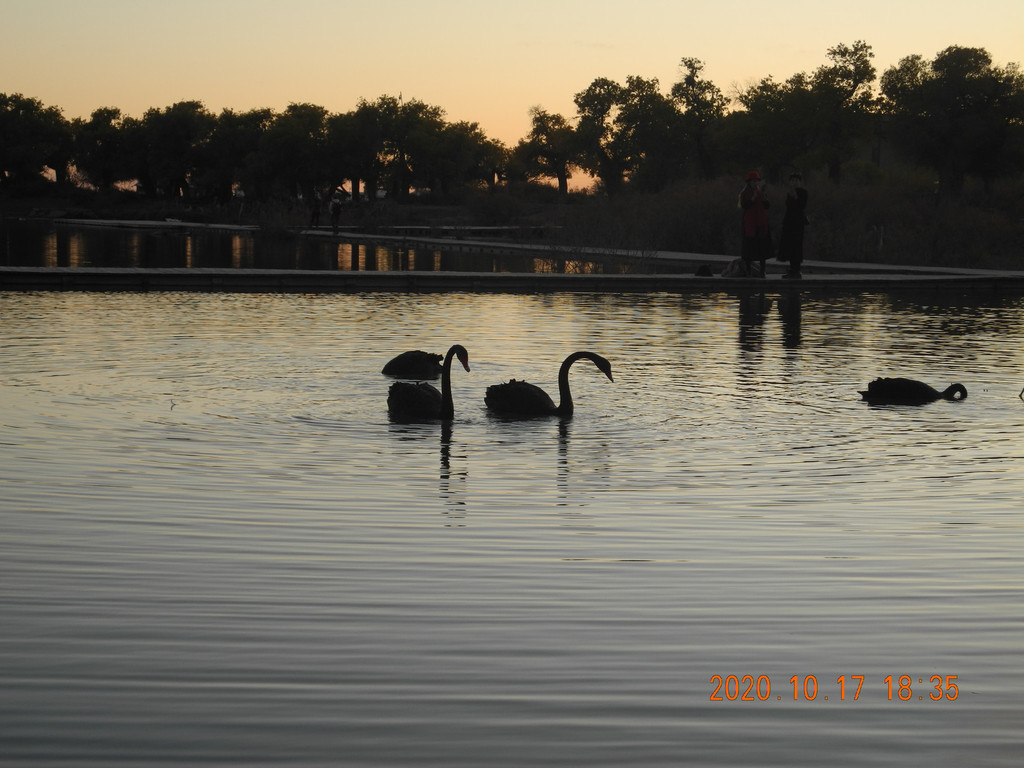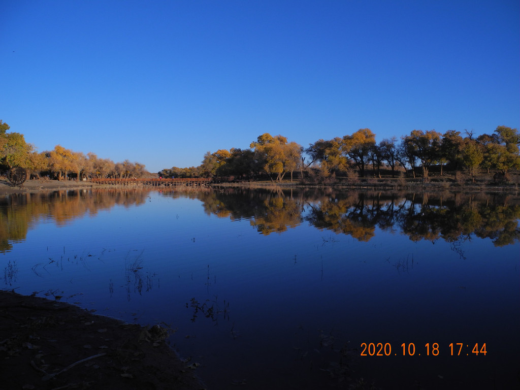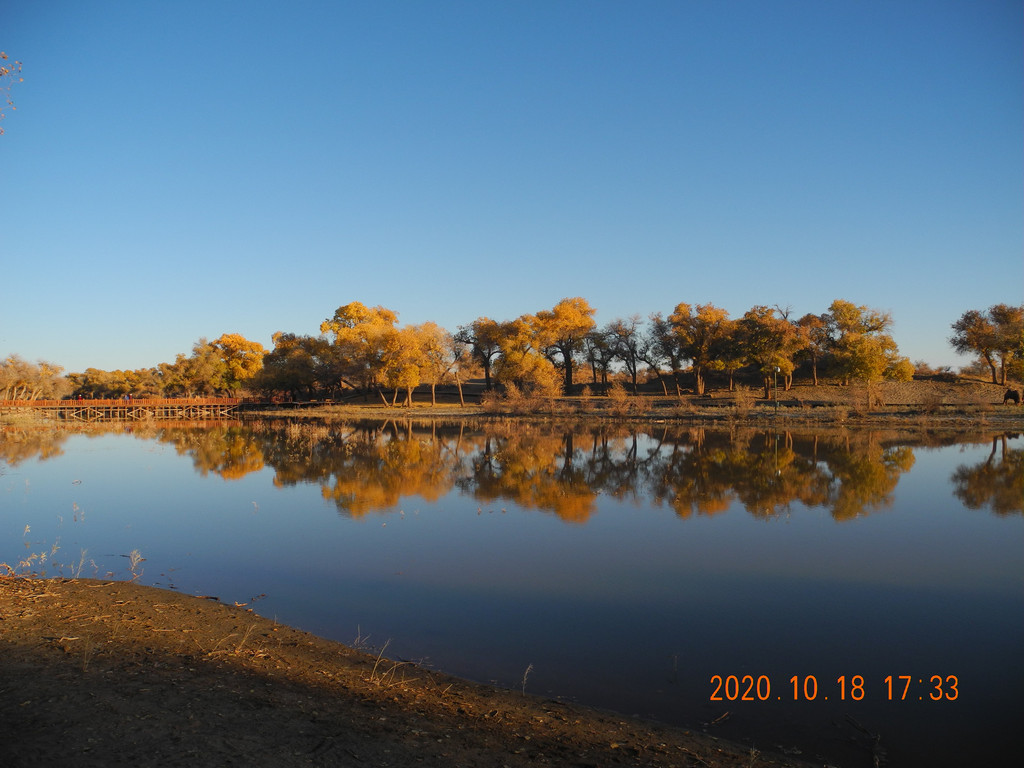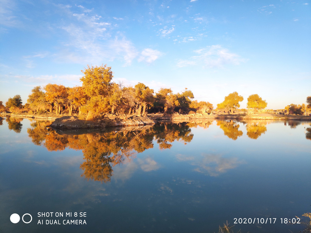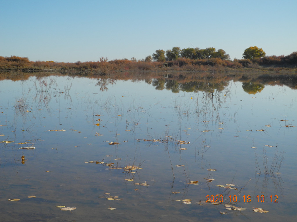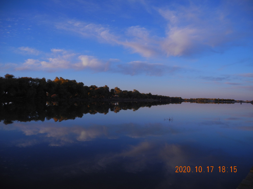 今天风大,湖面有些涟漪,倒影出的胡杨有丝绸的感觉。这两天胡杨看多了,兴趣不是太大了。