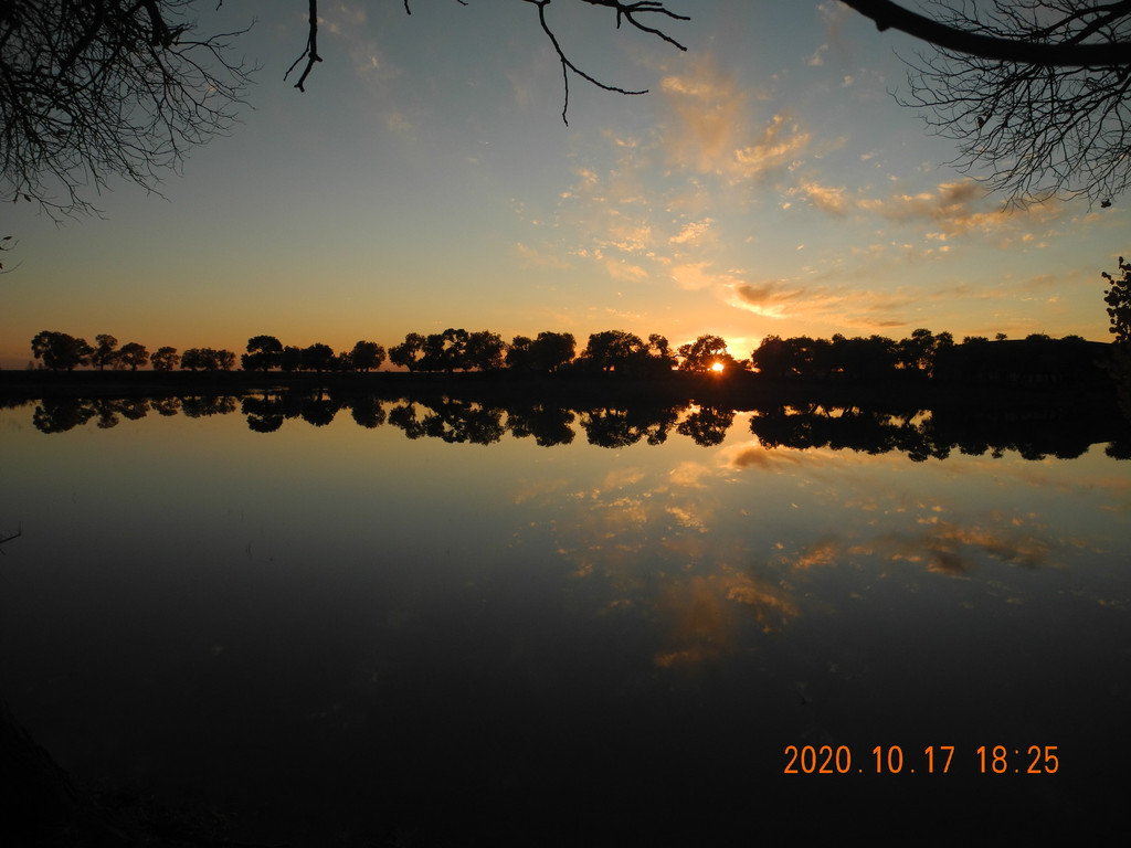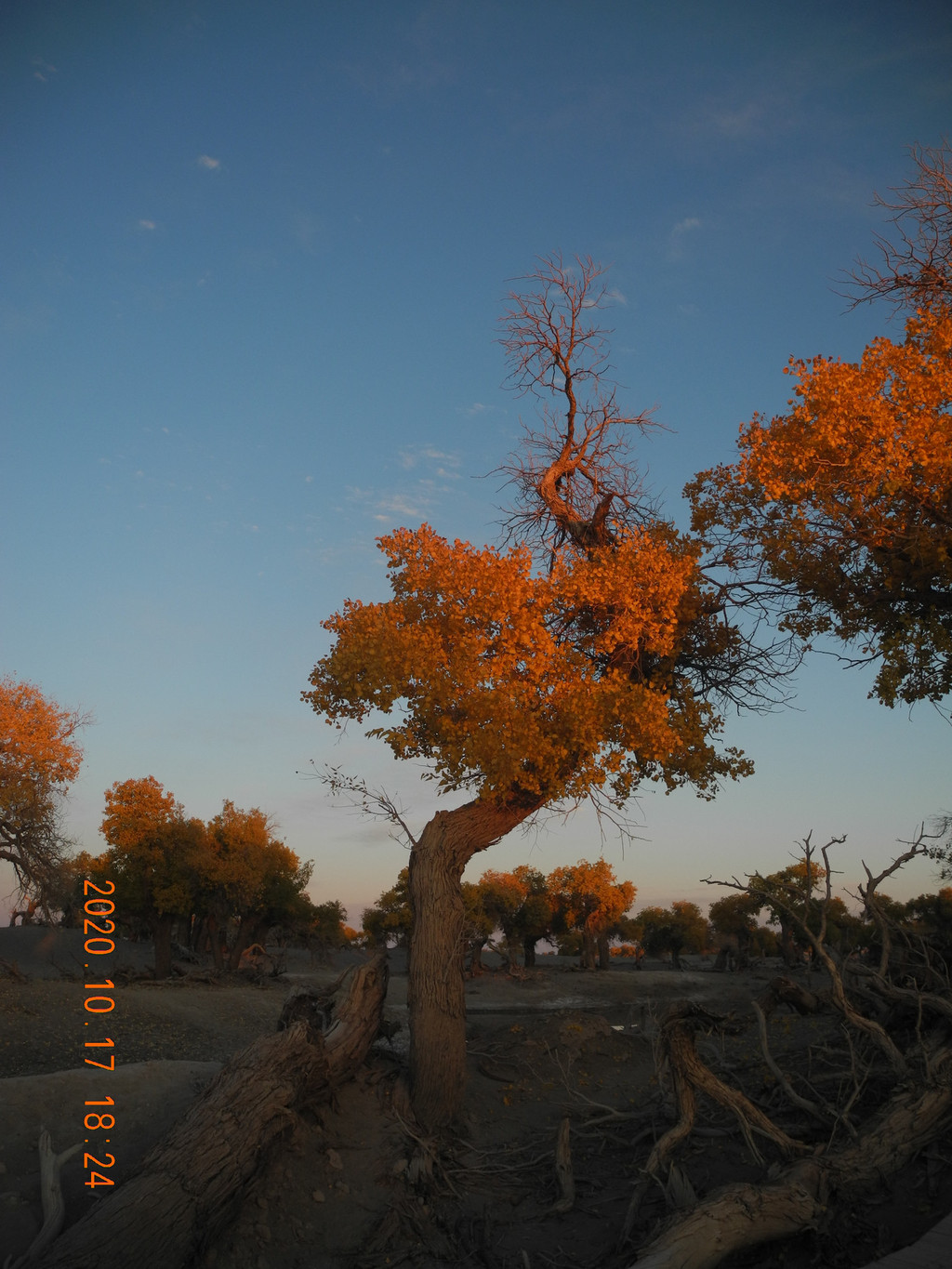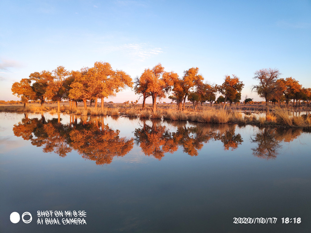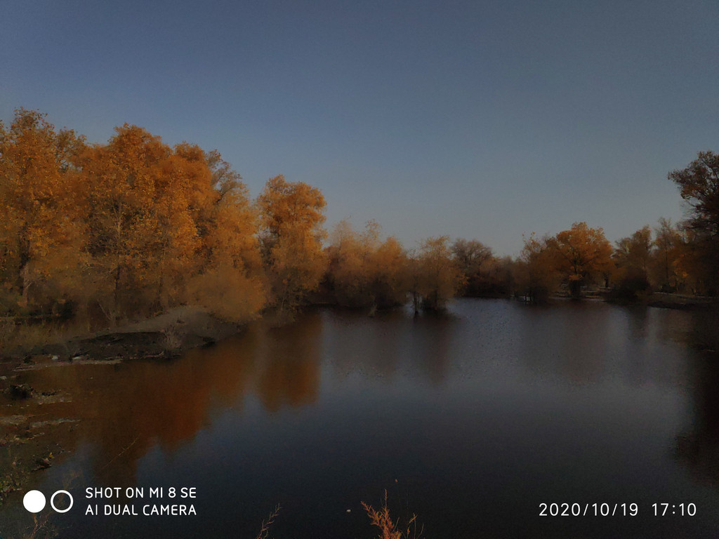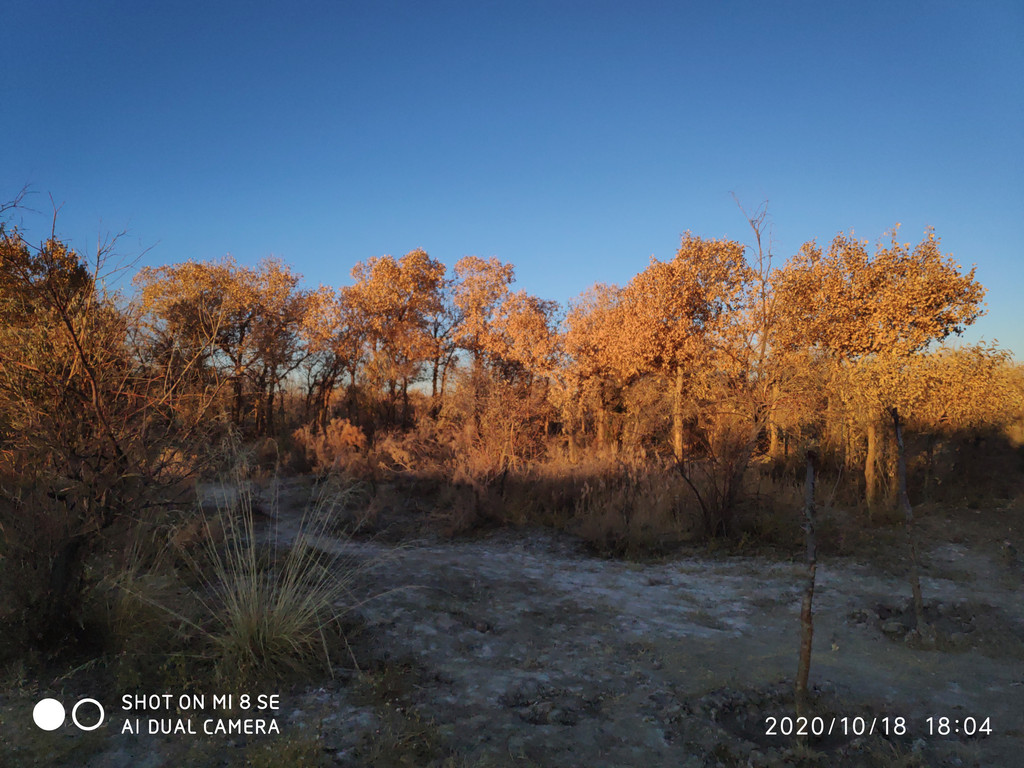 日落中的胡杨林。手机拍的都能这么漂亮