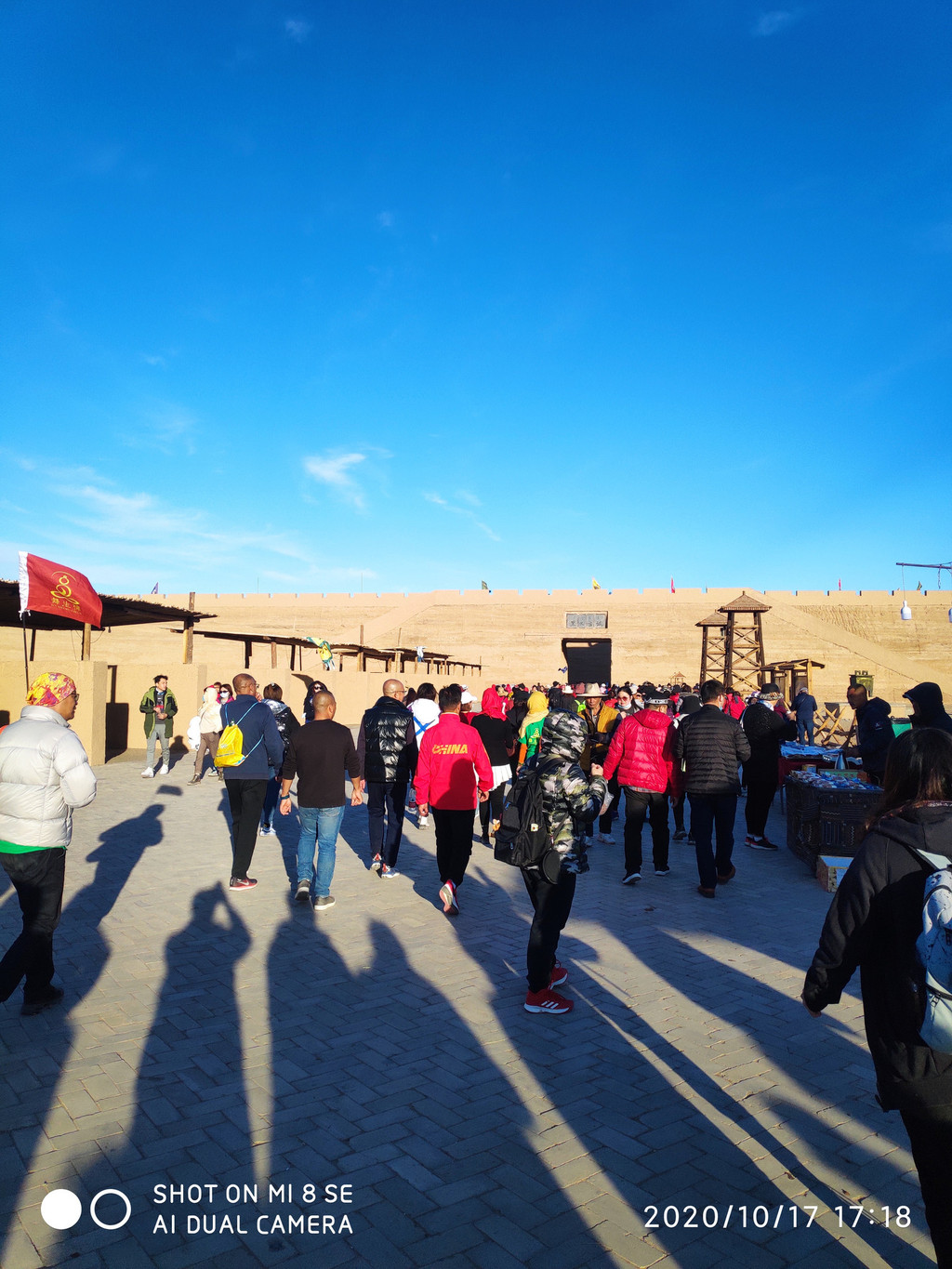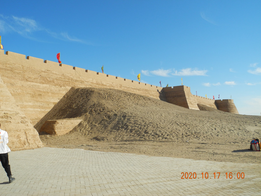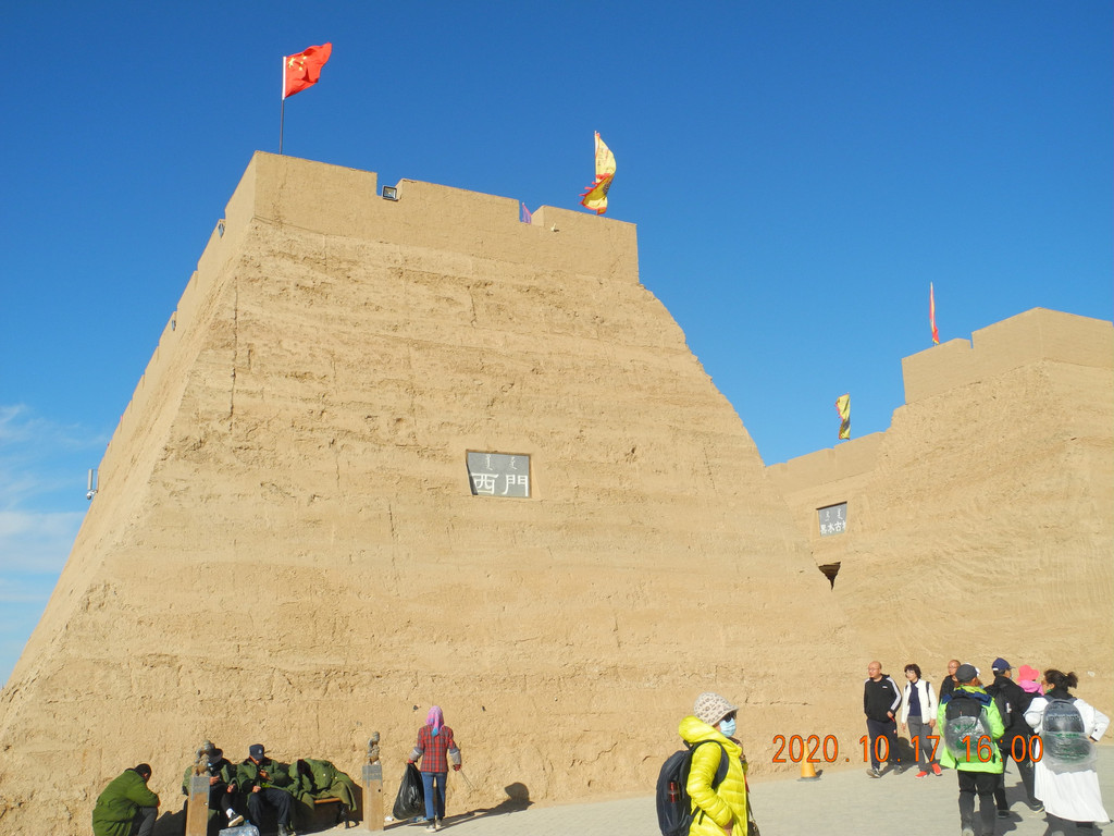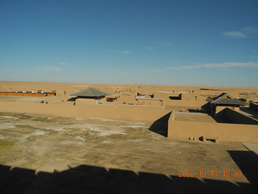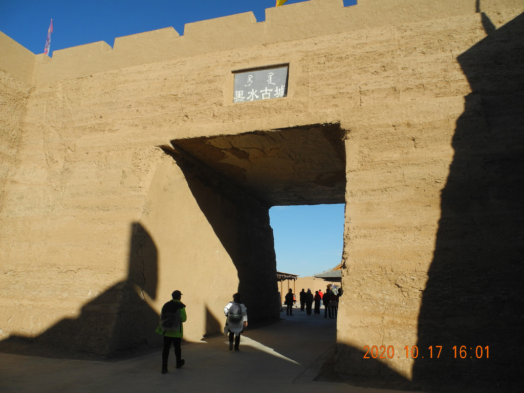 古城还是挺大的,里面作为影视基地,整个黑水古城里面都是些摆摊的,作为一个中转站。整个景区是弱水胡杨林--凤凰林--黑水古城--怪树林,一站站坐车过去,团队游客从怪树林看完日落出大门,旅游大巴在怪树林外等候,我们车停在胡杨林那边,只能原路返回。黑城遗址现在封闭没车过去。