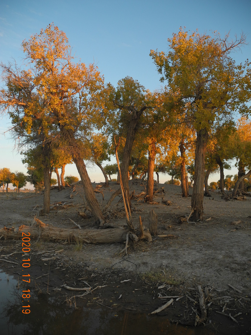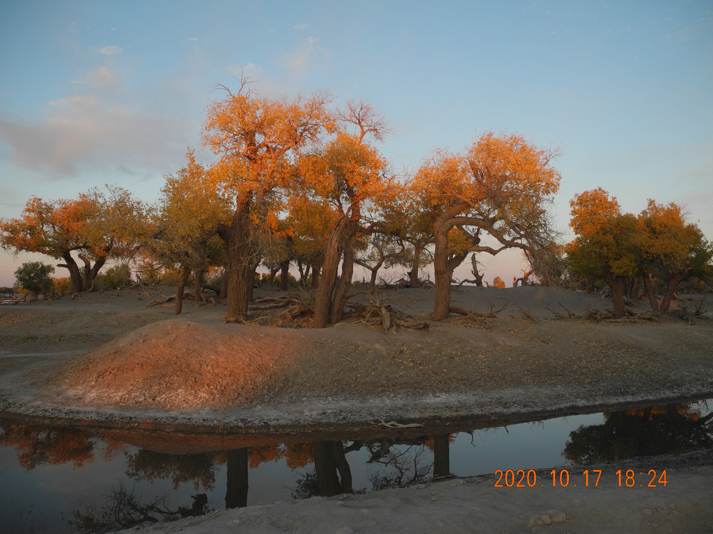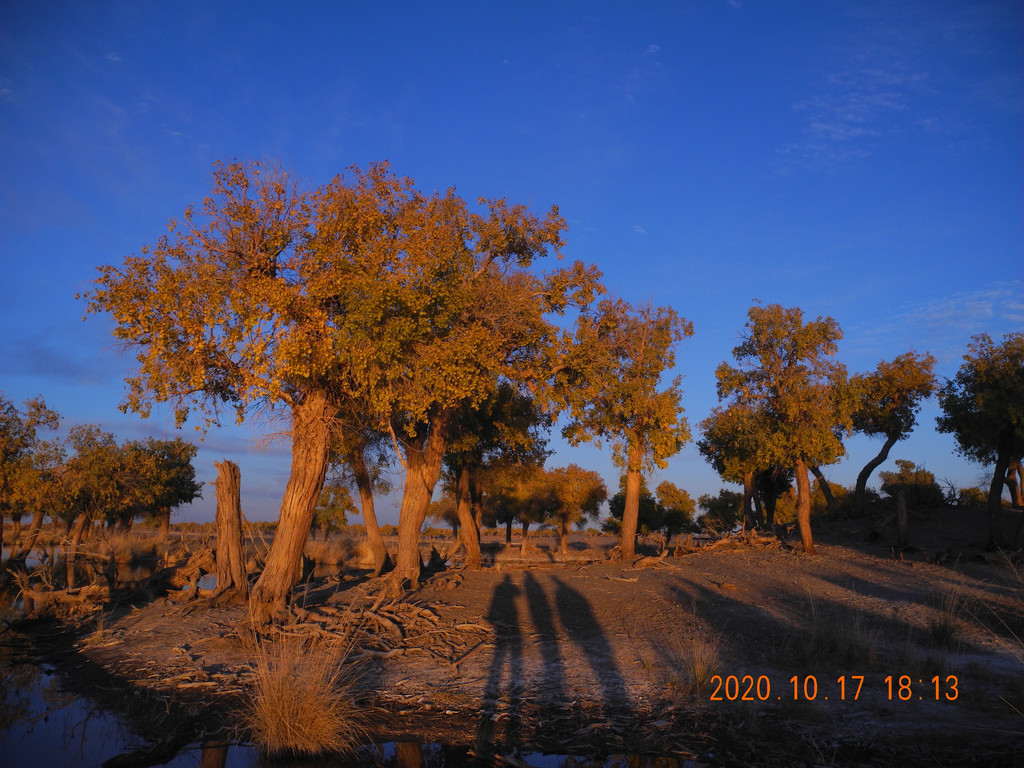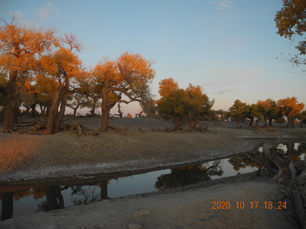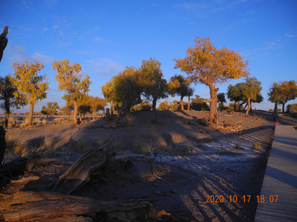 本着昨日的经验我们还是准备再日落时分赶回门口的景区,继续无人且安静的就专属于我们的胡杨林。