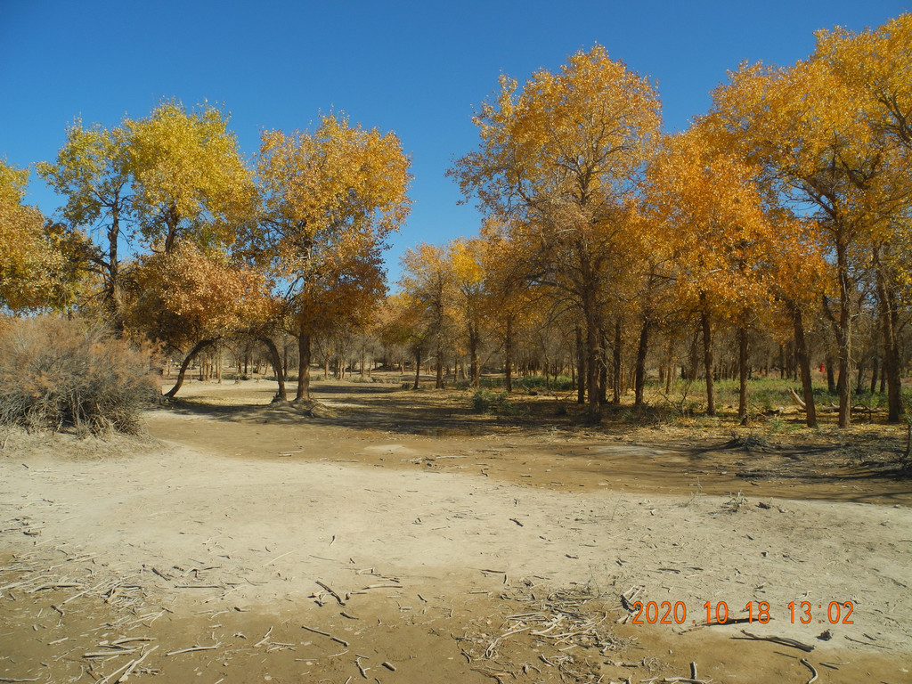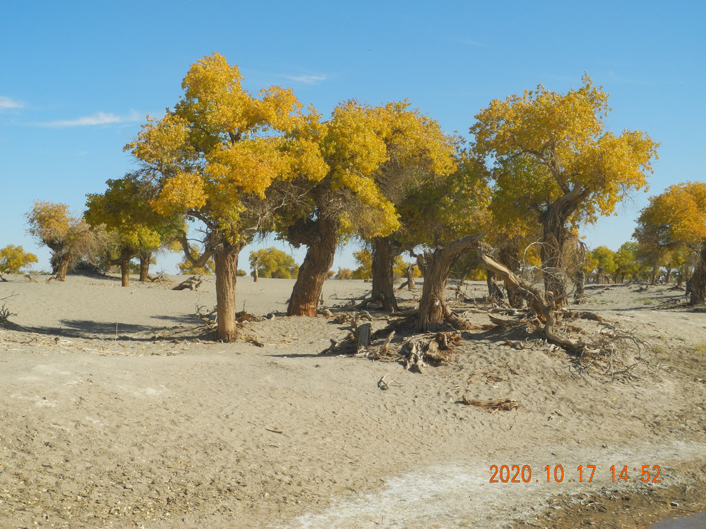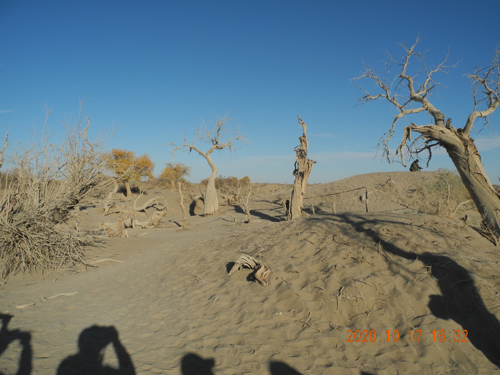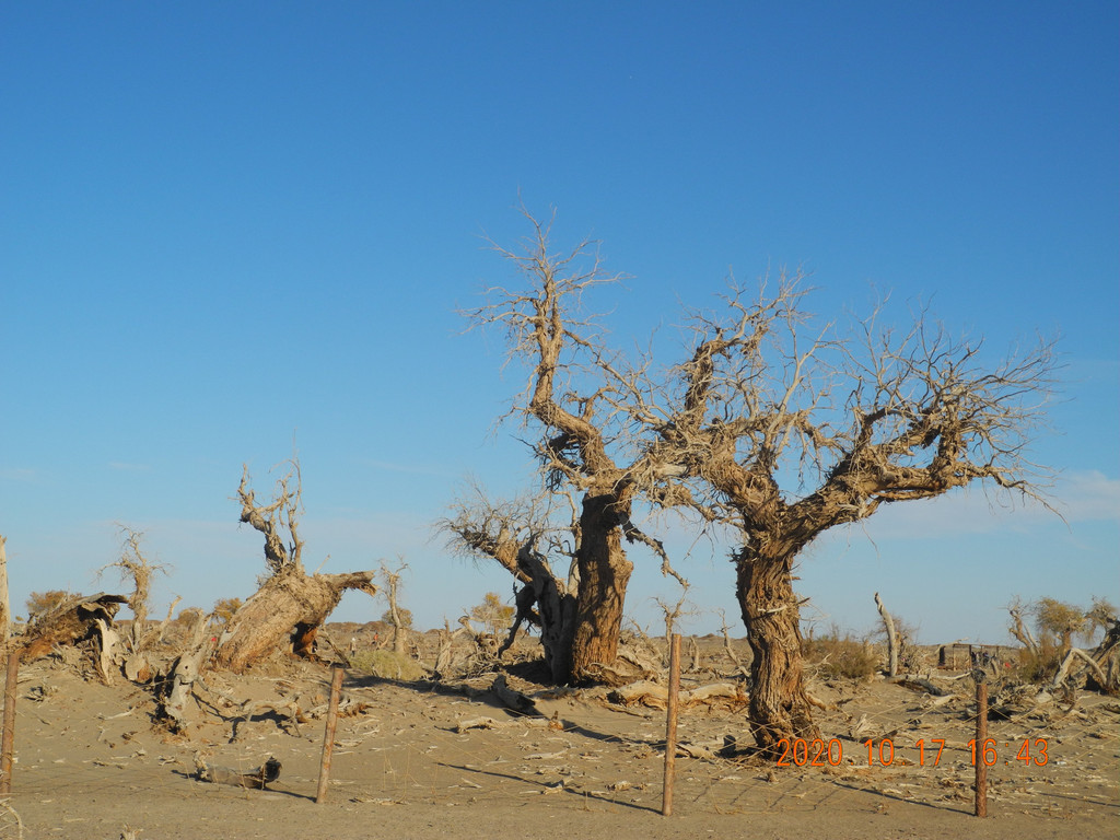 今天的胡杨林叶子有点枯萎,没有昨天的好,感觉昨天的期望太大了,总感觉今天的主景区应该比昨天的好,但是还是失望了。具体游玩过程就不表了,网上都能搜到,无非三道桥,四道桥(英雄林),一直到八道桥。