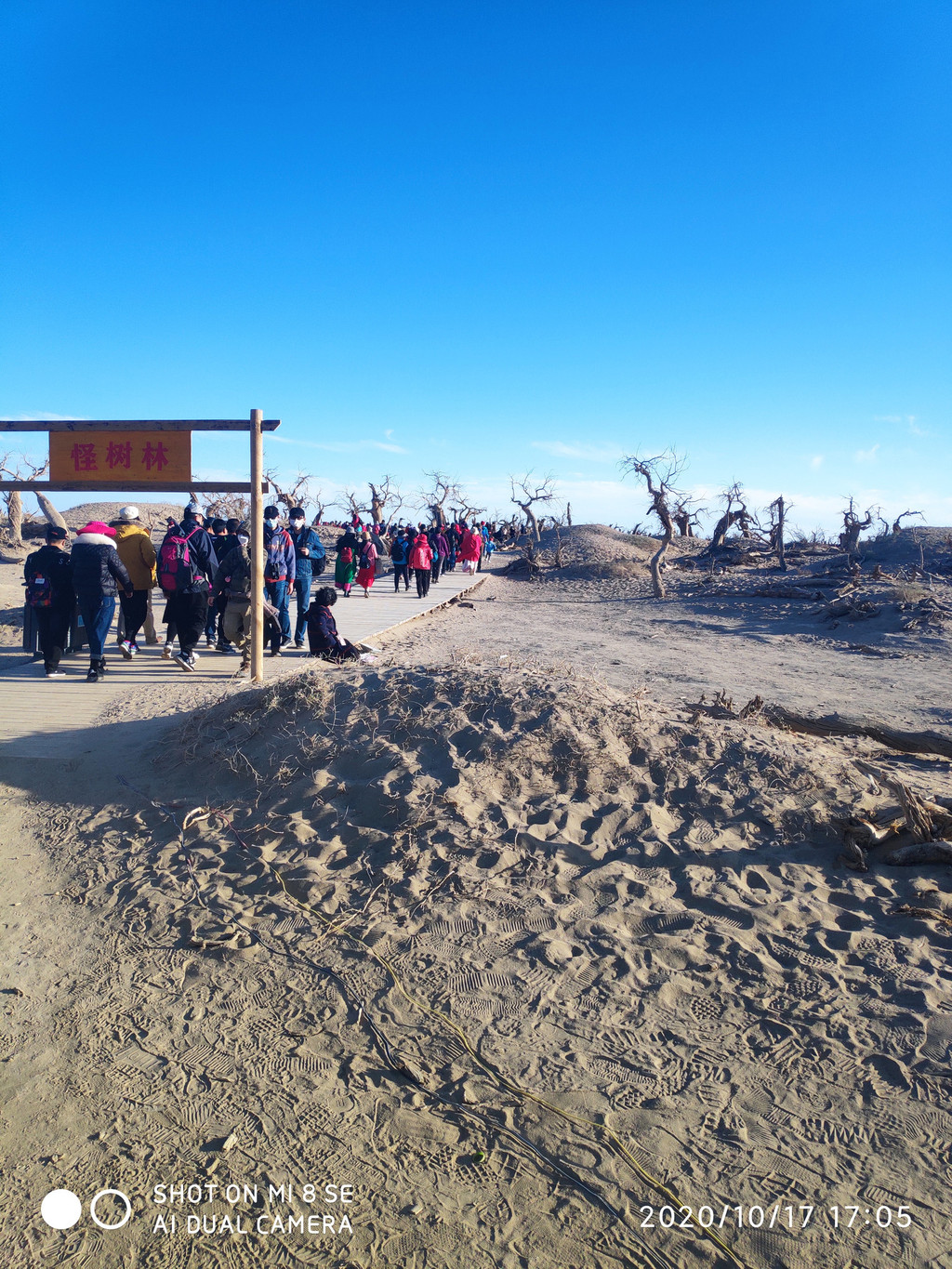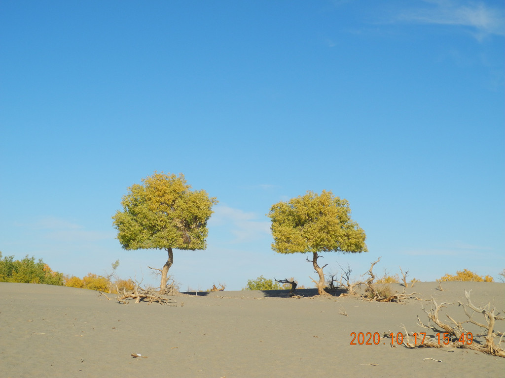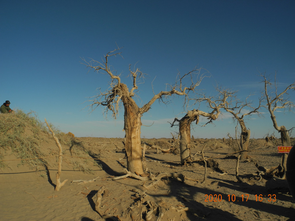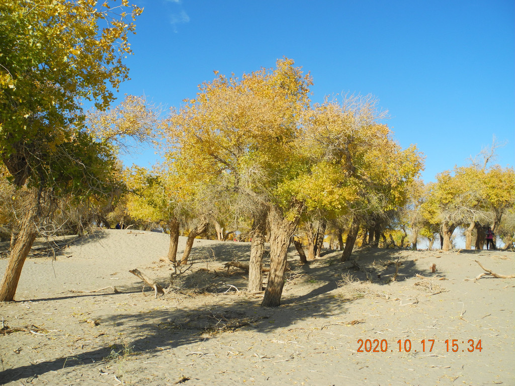 今天的胡杨林叶子有点枯萎,没有昨天的好,感觉昨天的期望太大了,总感觉今天的主景区应该比昨天的好,但是还是失望了。具体游玩过程就不表了,网上都能搜到,无非三道桥,四道桥(英雄林),一直到八道桥。