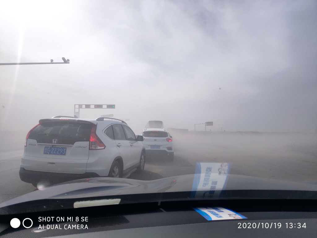 早上在手机上看到今天额济纳会有沙尘,果然刚出额济纳,酒航路上沙尘阵阵。